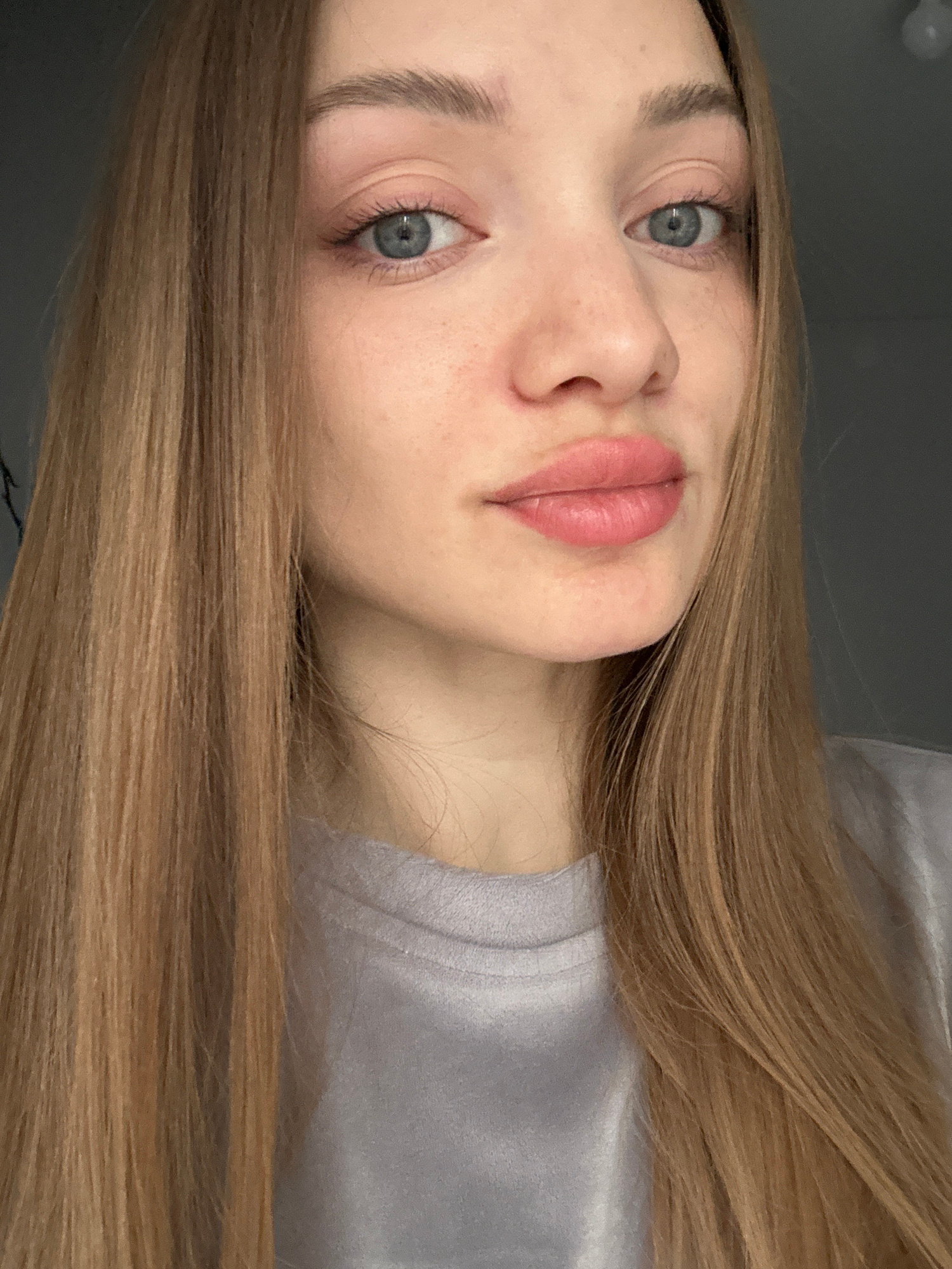 The image is a close-up portrait of a young woman, rotated 90 degrees clockwise, giving the impression that she is lying down with her head positioned towards the left of the frame. The subject is a…read more