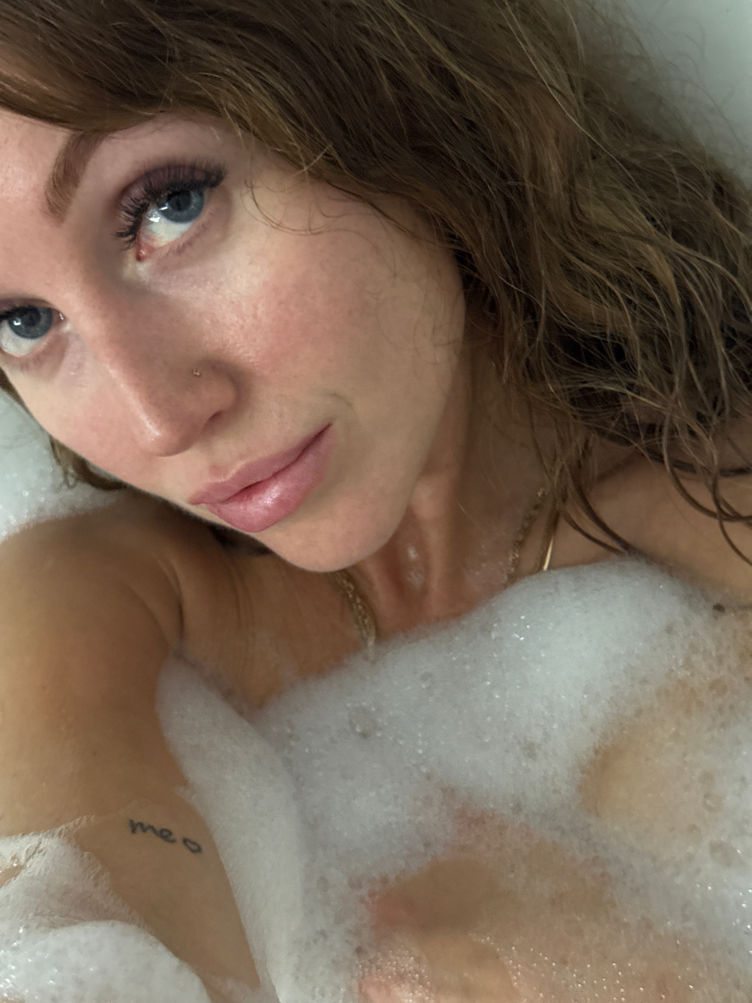 An overhead close-up image shows a person taking a bubble bath in Chaikovsky, Russia. The individual, likely female, is partially submerged, with their head and upper torso visible, largely covered by…read more