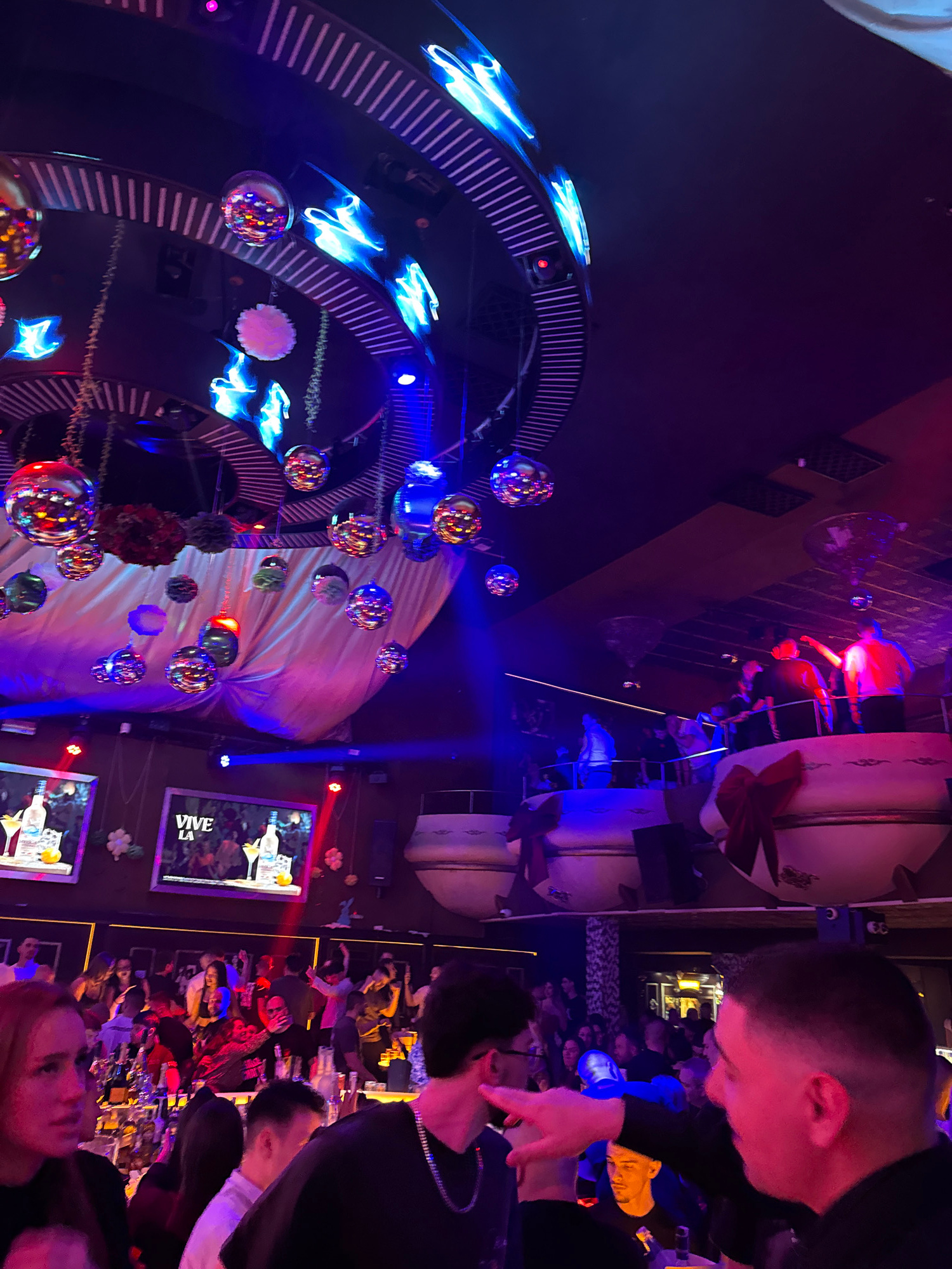 The image depicts a nightclub scene, likely in Pleven, Bulgaria. The foreground contains people, with one man predominantly featured on the right side of the frame, engaged in an unclear interaction.…read more