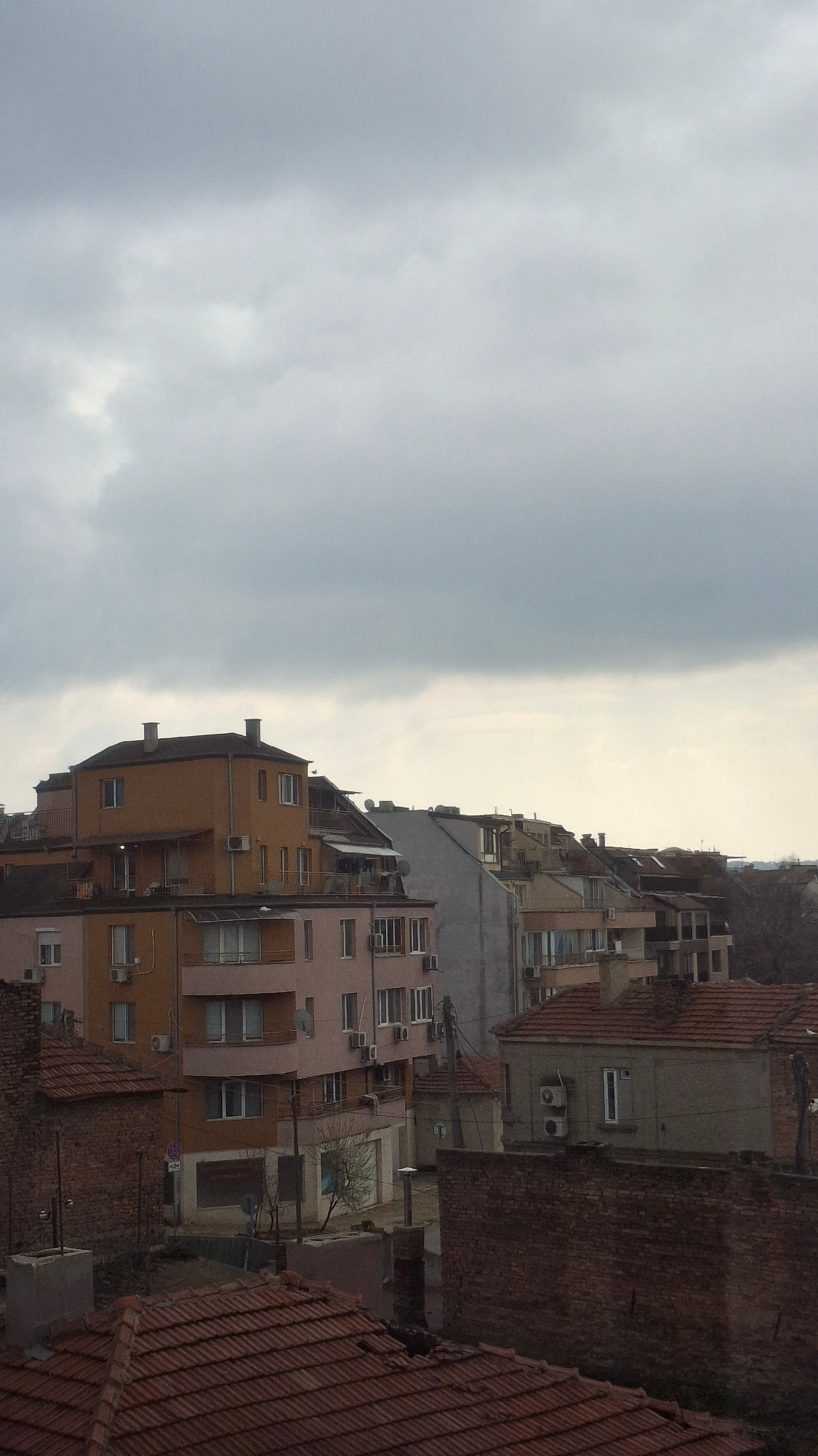 The image depicts a densely built urban landscape, likely situated in Varna, Bulgaria. The architecture is characterized by a mix of residential buildings, predominantly medium-rise, with varied color…read more