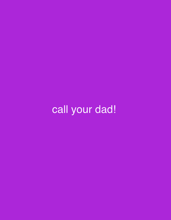 A purple background has the words "call your dad!" in the center. There are no other details. The city of Perm, Russia, is not mentioned or depicted.