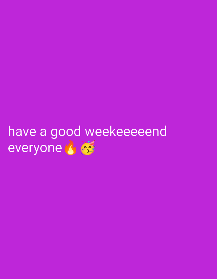 The image features a purple background with the text "have a good weekeeeeend everyone" along with a fire emoji and a party face emoji. There is no evidence of Emmerich on the Rhine, Germany in the im…read more