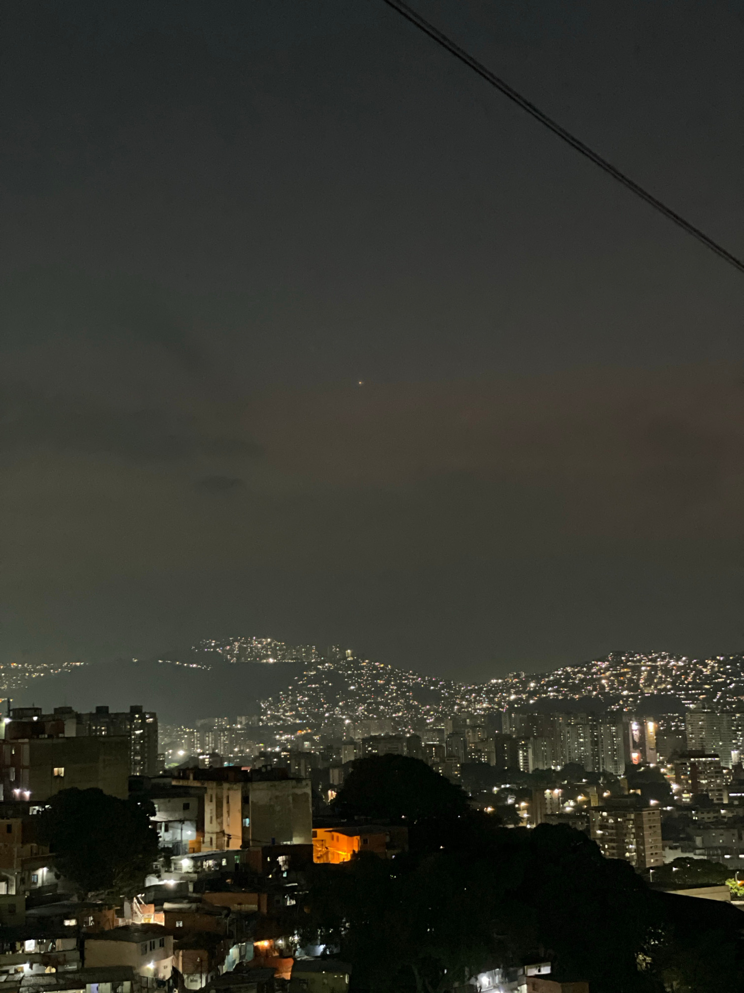 Here's a description of the image: The image shows an aerial view of a city at night, with a clear division between two distinct areas. To the right, the image displays a densely populated urban ar…read more