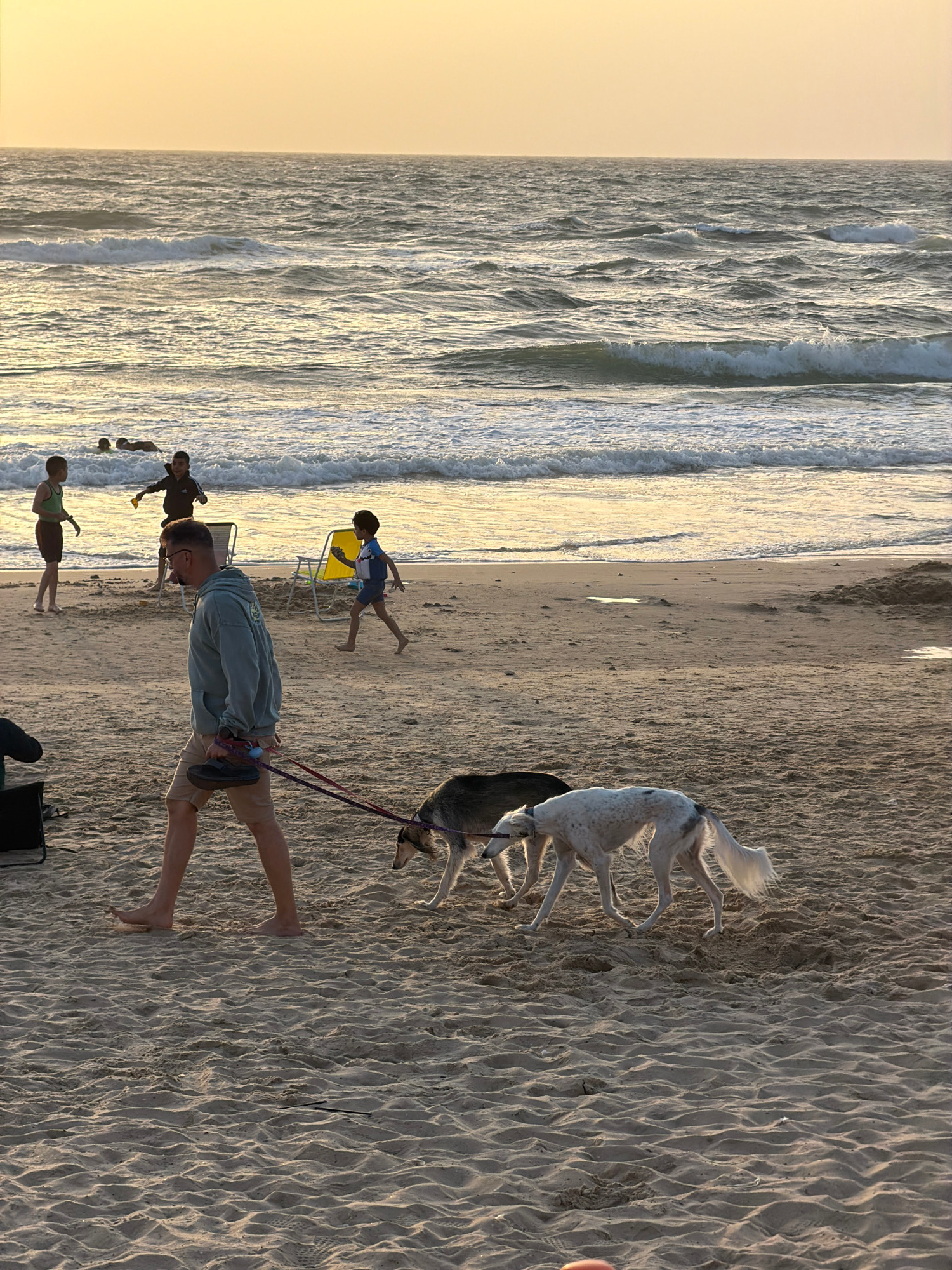 The image depicts a beach scene at Tel-Aviv, Israel. The beach has fine, light-colored sand, and the waves of the Mediterranean Sea are visible on the left side of the image. The sky suggests either a…read more