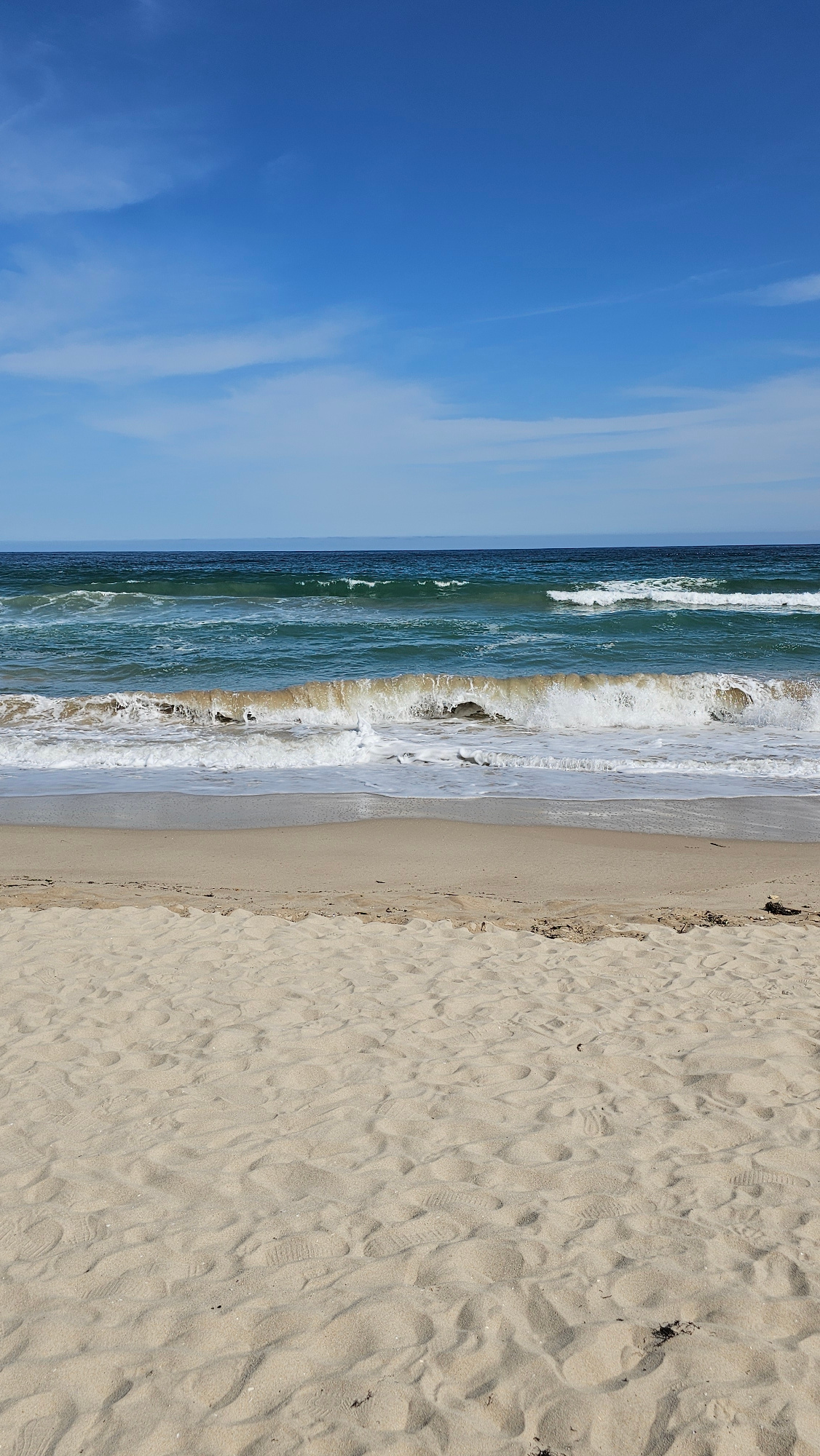This image presents a serene beach landscape, likely in Kranevo, Bulgaria. The scene is divided horizontally into three main sections: the sky, the ocean, and the sandy beach. The upper portion of th…read more