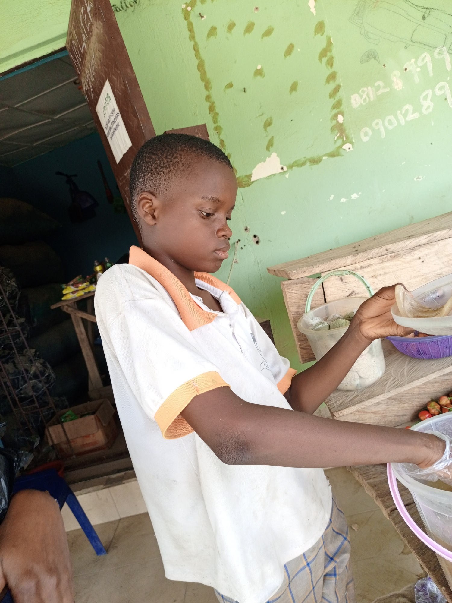 An individual, identified as a young boy, stands at a wooden structure in what appears to be an outdoor or semi-outdoor setting. The location is the city of Keffi, Nigeria. The boy wears a white shirt…read more
