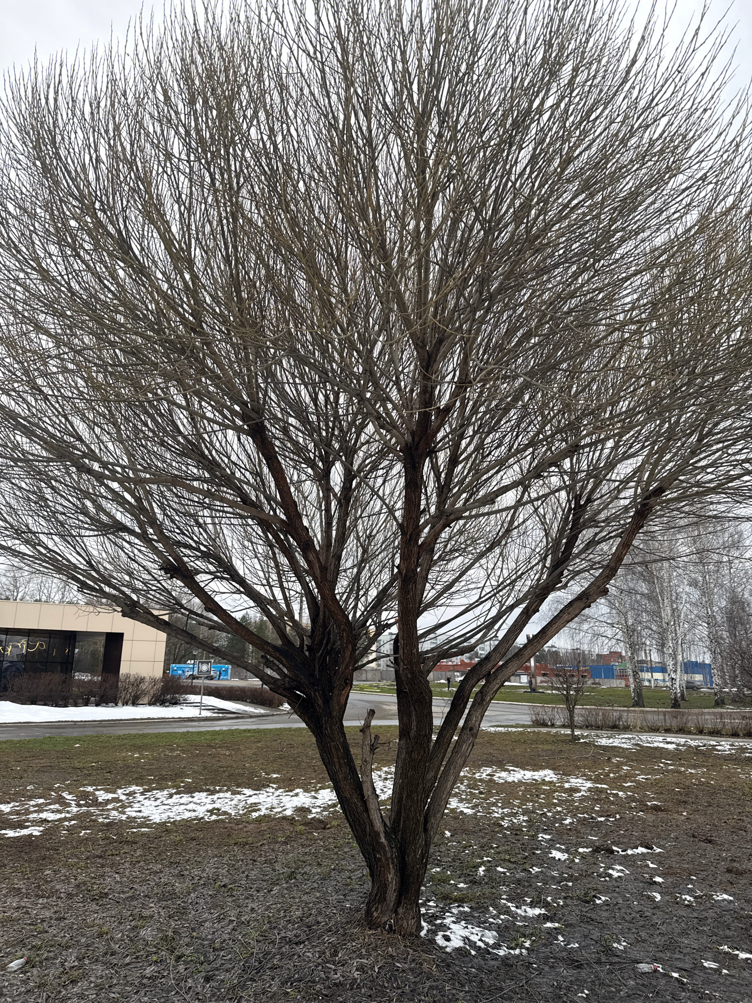 A landscape photograph depicts a bare tree with numerous branches dominating the frame. The tree has a thick, dark trunk that splits into several large branches. The branches extend upwards and outwar…read more