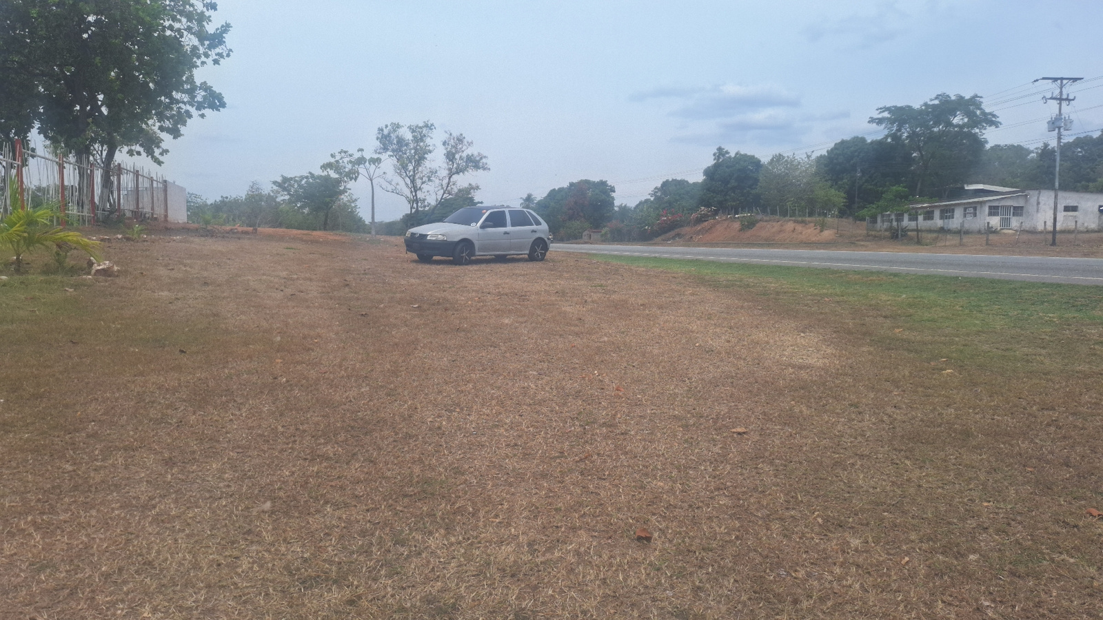 A silver hatchback car is parked on a patch of dry, brown grass. In the background, there is a paved road and a small, white building with a brown dirt embankment. Further behind the road and building…read more