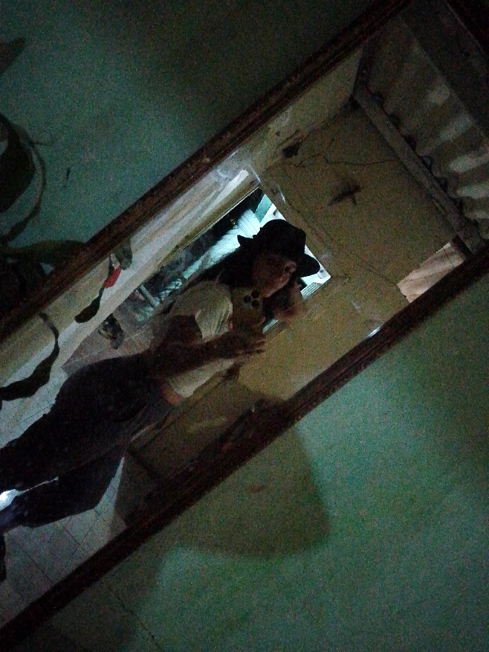 The image depicts a female individual captured in a mirror selfie within an interior space, stated to be located in Juan Griego, Venezuela. The exact position within the city is not discernible from t…read more