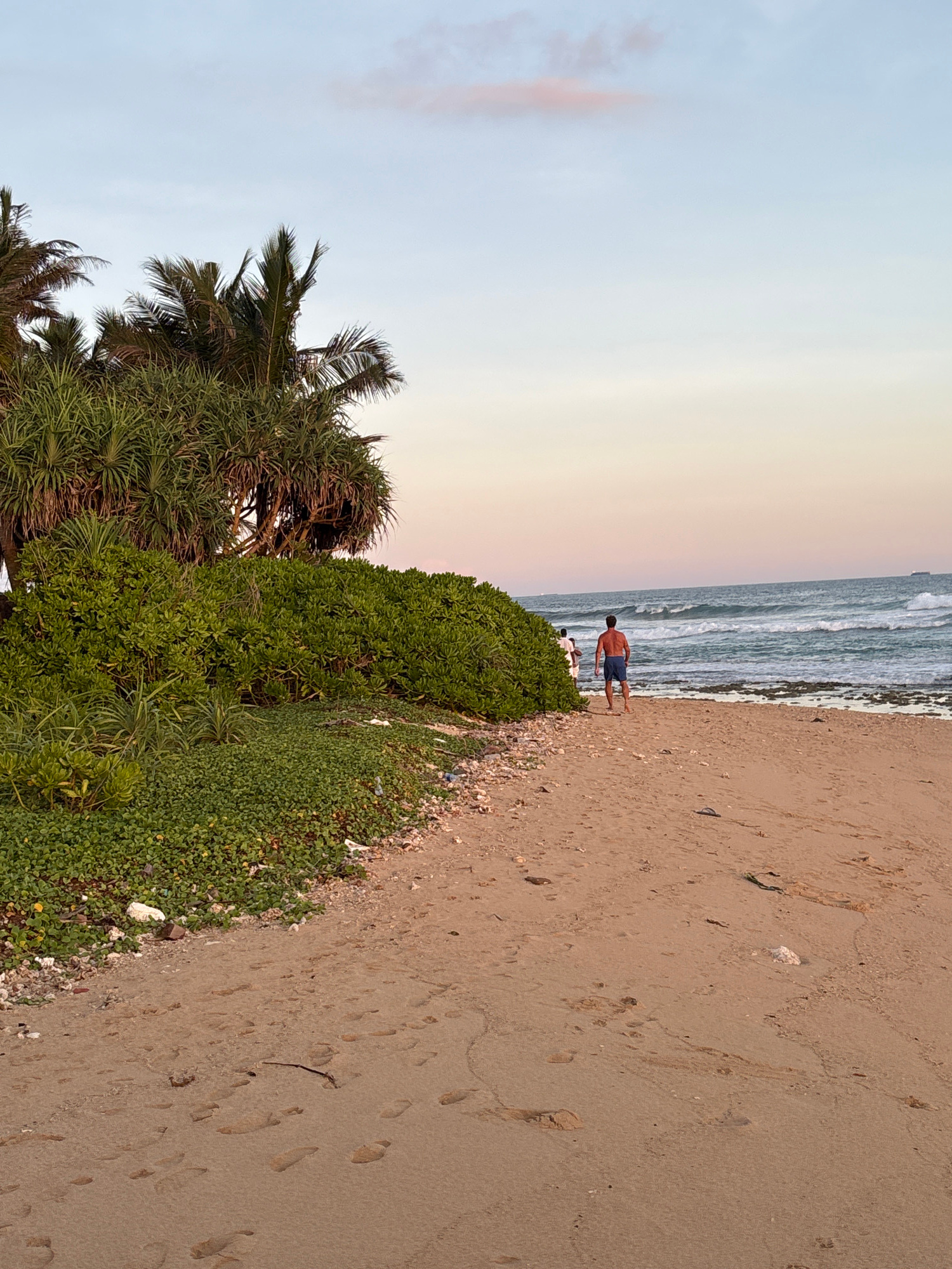 The image captures a serene coastal scene at what appears to be late afternoon or early morning, indicated by the soft, pastel hues of orange, pink, and light blue in the sky. The primary subject is…read more