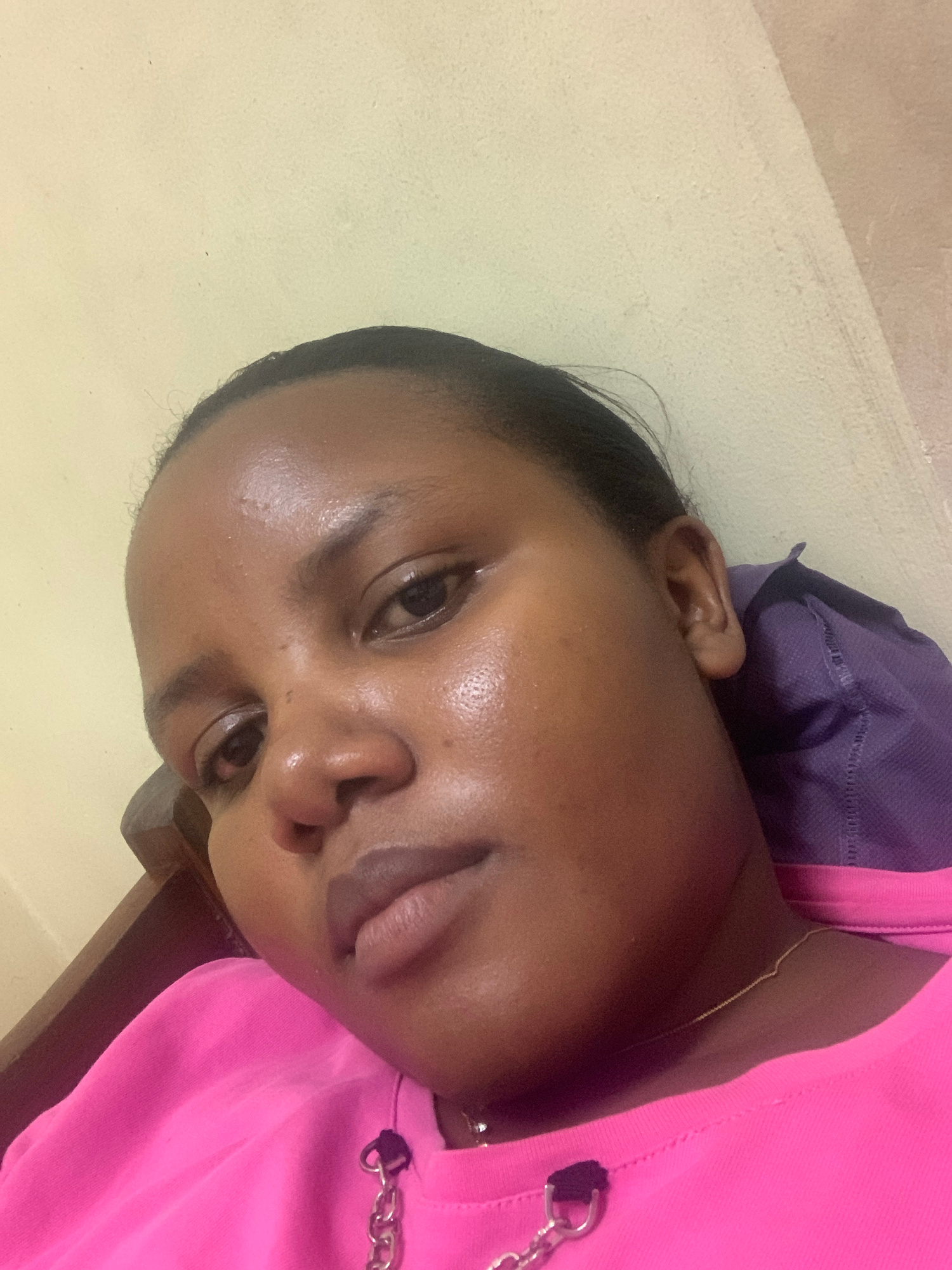 A close-up, rotated portrait depicts a person with dark hair and skin. The person is wearing a bright pink garment with silver chain details and a gold necklace. A purple bag is positioned behind thei…read more