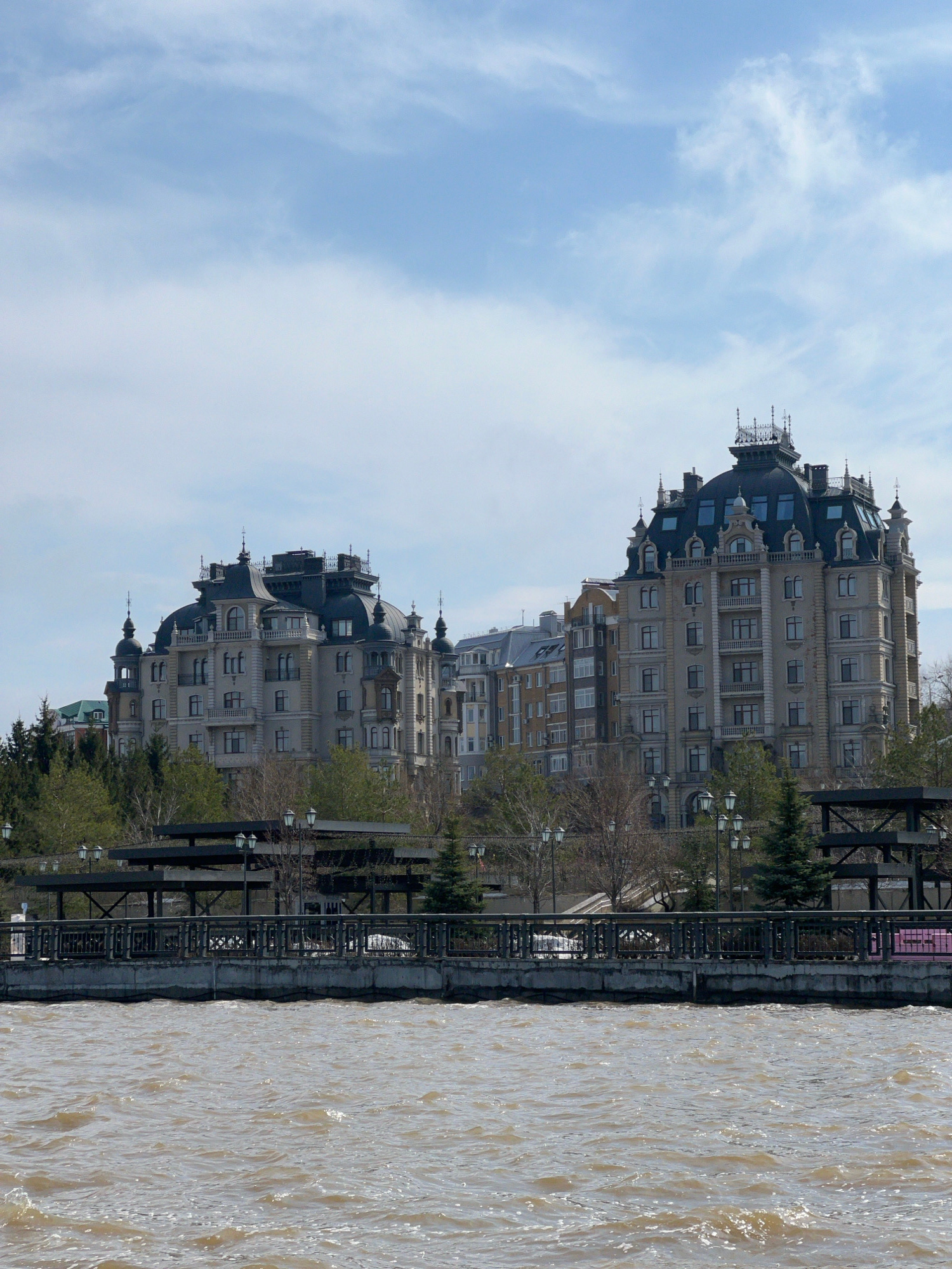 The image features the Palace of Farmers, located in Kazan, Russia, adjacent to the Kazanka River. The building has a Beaux-Arts architectural style with a prominent green dome. The image also include…read more