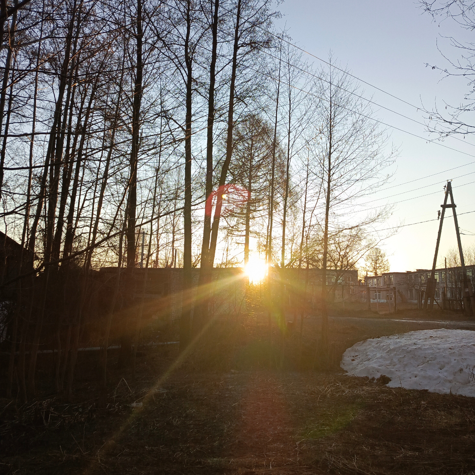 The photograph captures a landscape scene in Chaikovsky, Russia. In the foreground, there is a barren area of ground, littered with dry grass and fallen branches. A patch of melting snow is visible on…read more