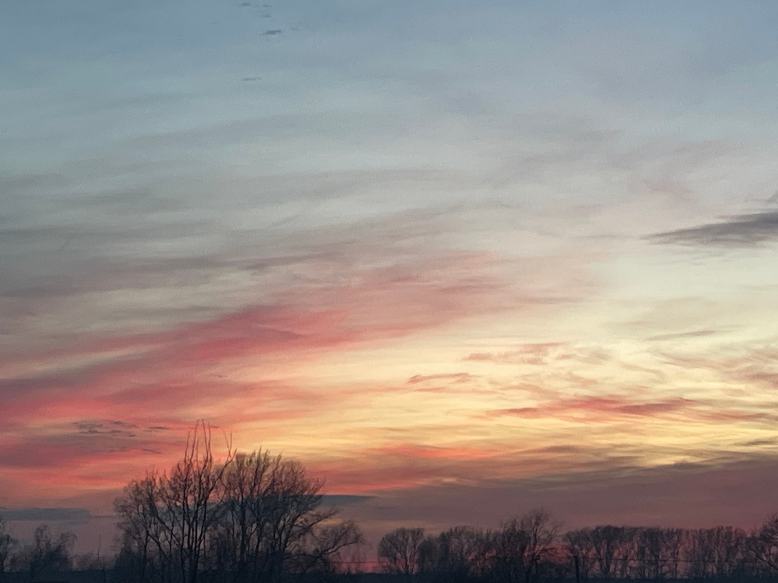 The image depicts a natural landscape scene at either sunrise or sunset, observed in the city of Chaikovsky, Russia. The sky occupies the majority of the frame, displaying a gradient of colors from liβ¦read more