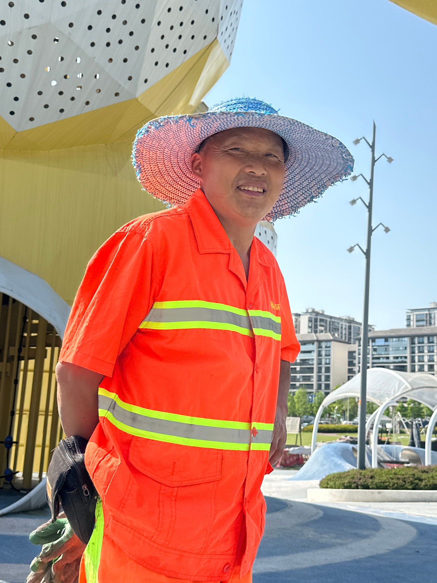 An outdoor portrait, taken on a bright, sunny day, features a smiling man. The image is oriented with the sky on the left and the ground on the right, but when viewed correctly, the man stands facing…read more
