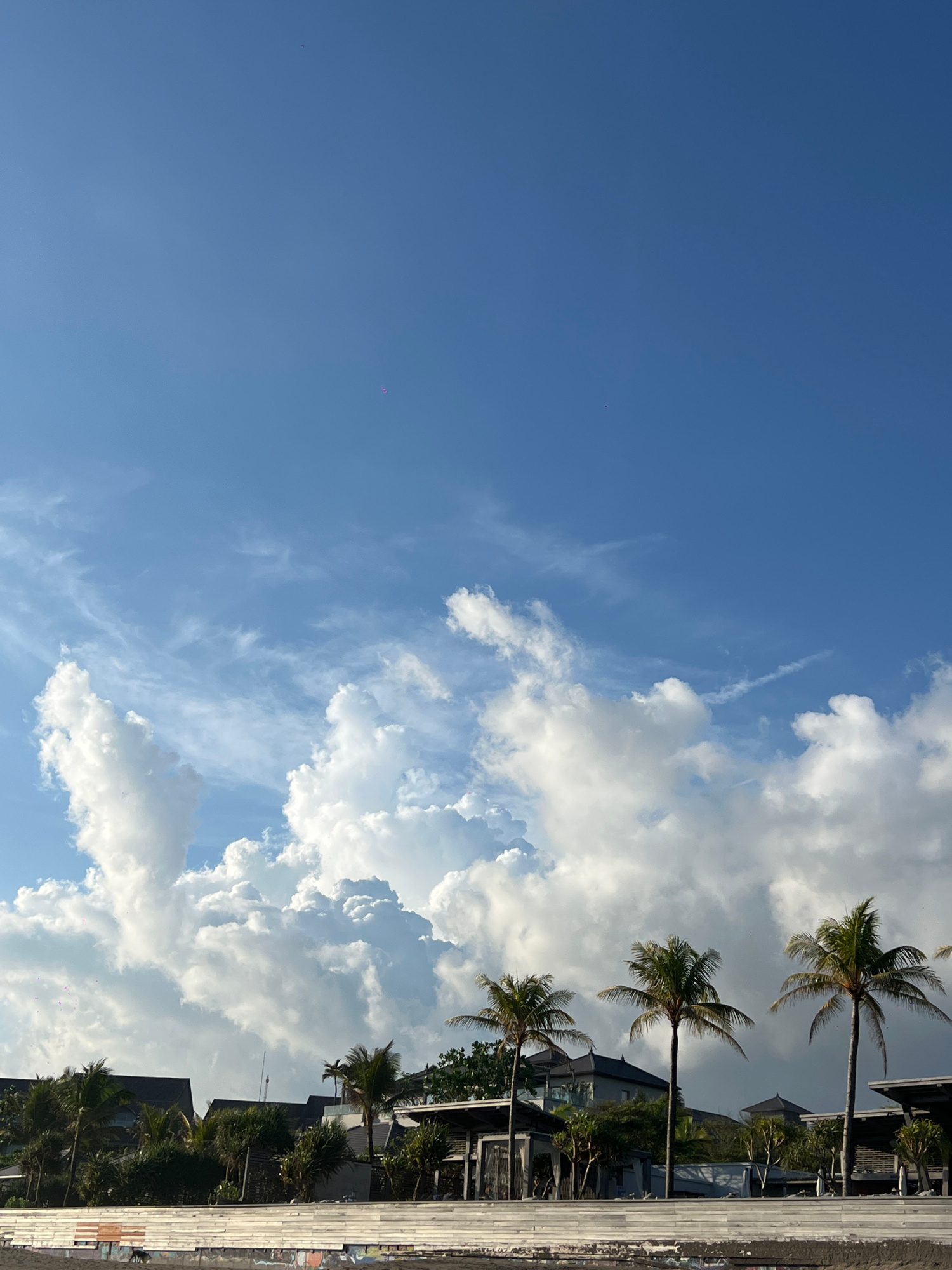The photograph shows a daytime scene in what appears to be North Kuta, Indonesia, given the presence of palm trees, architectural styles, and general environmental aesthetics characteristic of the reg…read more