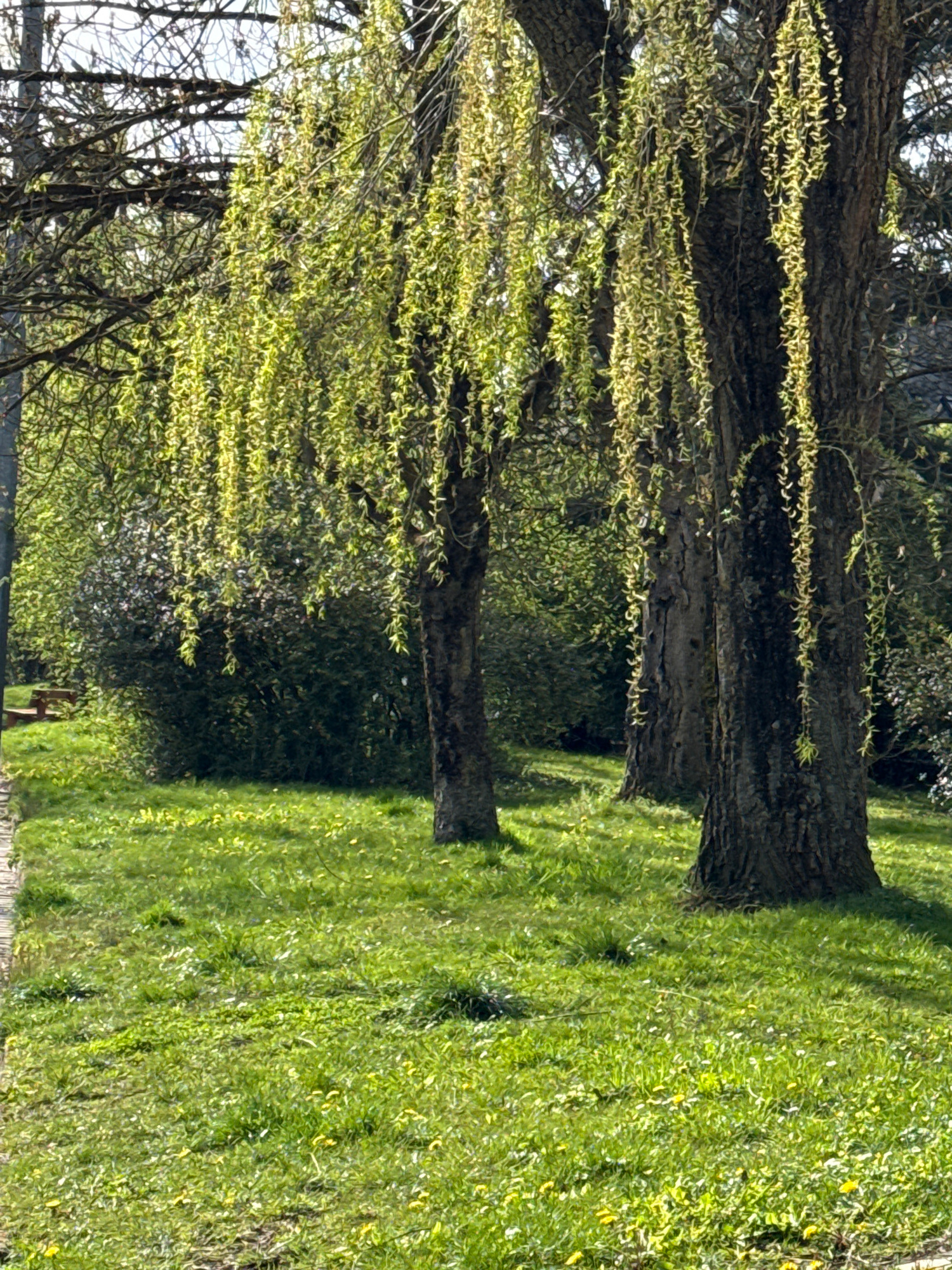The image shows a grassy area with several trees. The trees have green foliage. The ground is covered with green grass. The image was taken in Esch-sur-Alzette, Luxembourg.