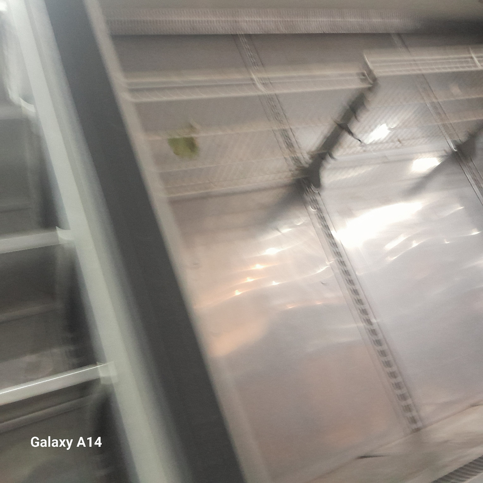 The image appears to be taken inside a room or enclosed space, possibly a building interior, in Nuseirat, Palestinian Territory. The focus is on the ceiling or upper portion of a structure featuring m…read more