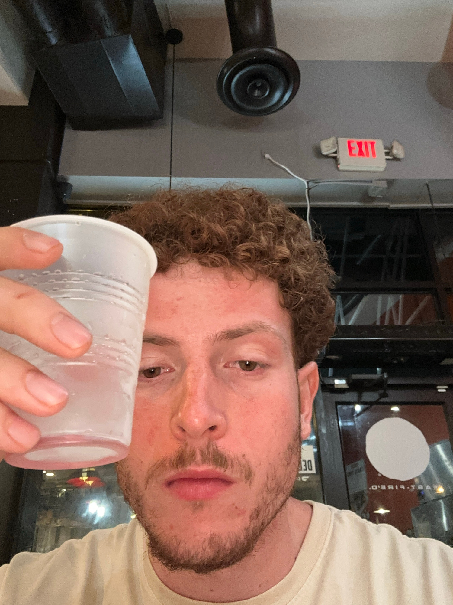 The media file displays an image rotated 90 degrees counter-clockwise. The primary subject is a man with curly brown hair and a beard, whose face is seen in profile, looking towards the top of the fraβ¦read more