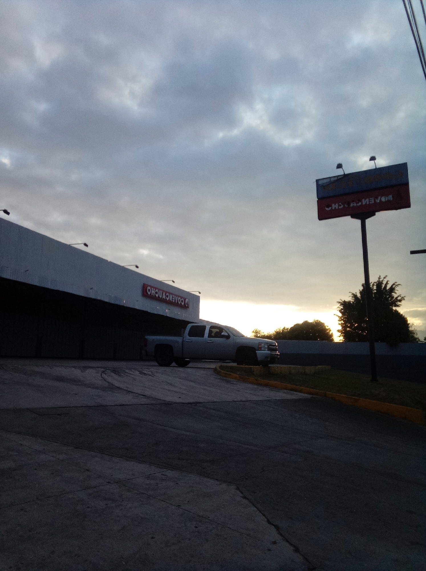 The image shows a silver pickup truck parked outside a commercial building with a sign that reads "COAVENCHO". The building is a light gray color and appears to be a warehouse or retail space. A largeβ¦read more