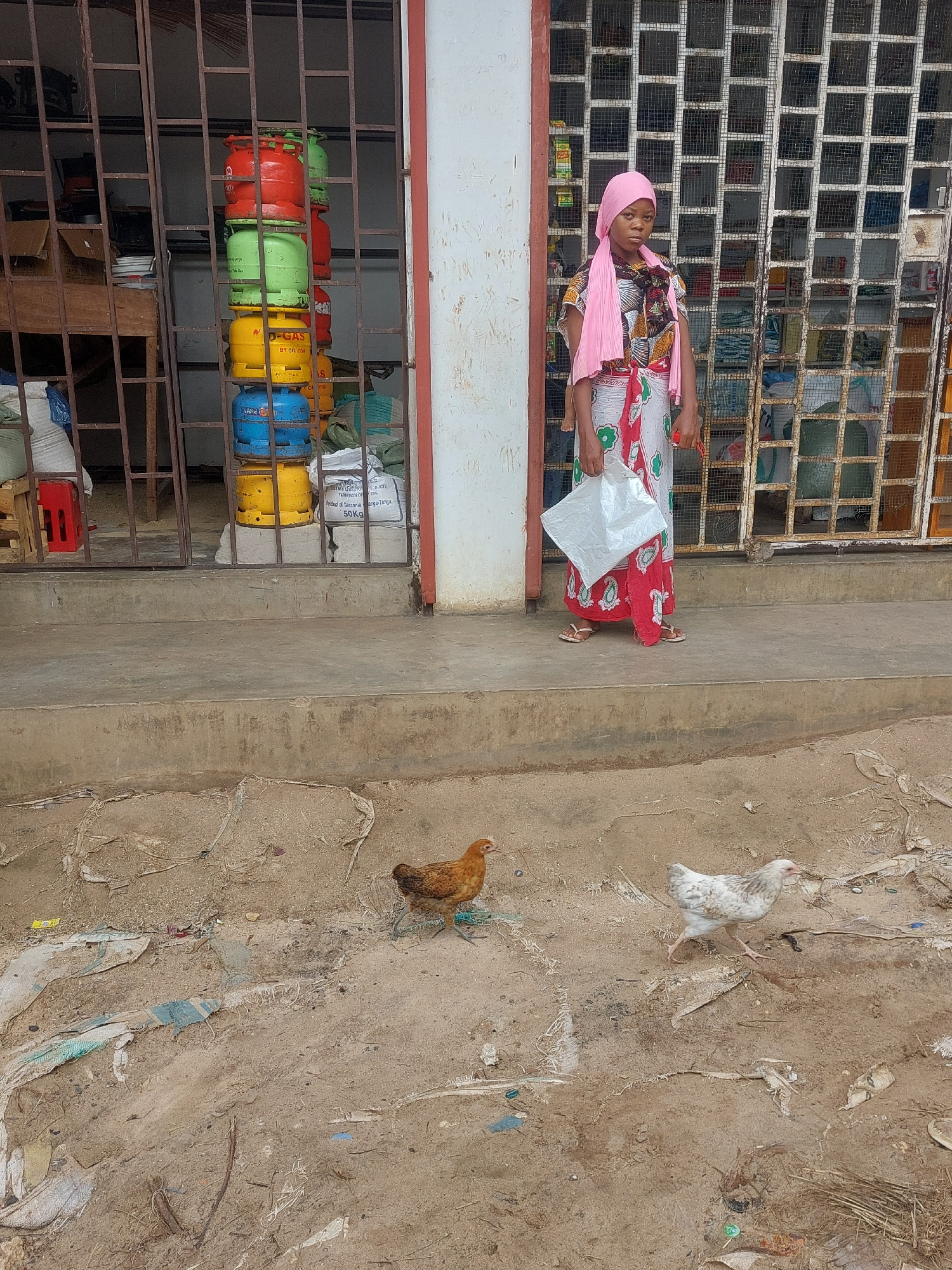 The image depicts an outdoor scene, likely a street in Dar es-Salaam, Tanzania, as indicated by the "Product of Tanzania" inscription on a 50kg gas cylinder visible in the lower left of the frame. A…read more