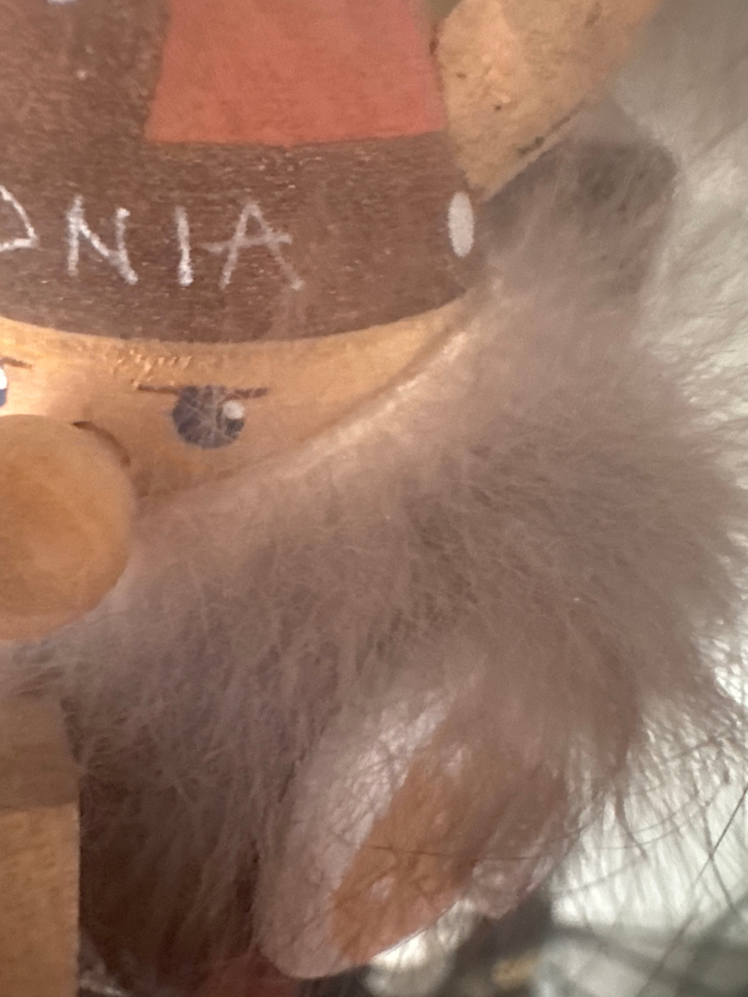 A close-up shot depicts the head and part of the mane of a wooden toy horse. The horse's head is partially brown, with a lighter orange portion. White lettering is visible on the brown area, reading "…read more
