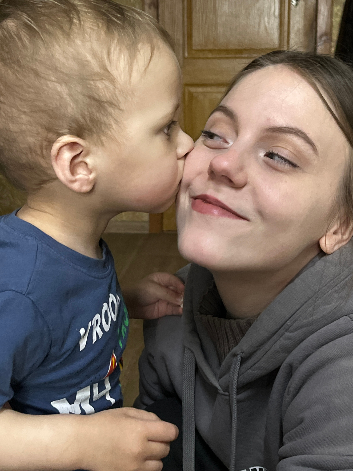This indoor photograph captures a tender, affectionate moment between an adult female and a young child in what appears to be a home setting, possibly in Фоки, Russia. The image is taken from a slight…read more