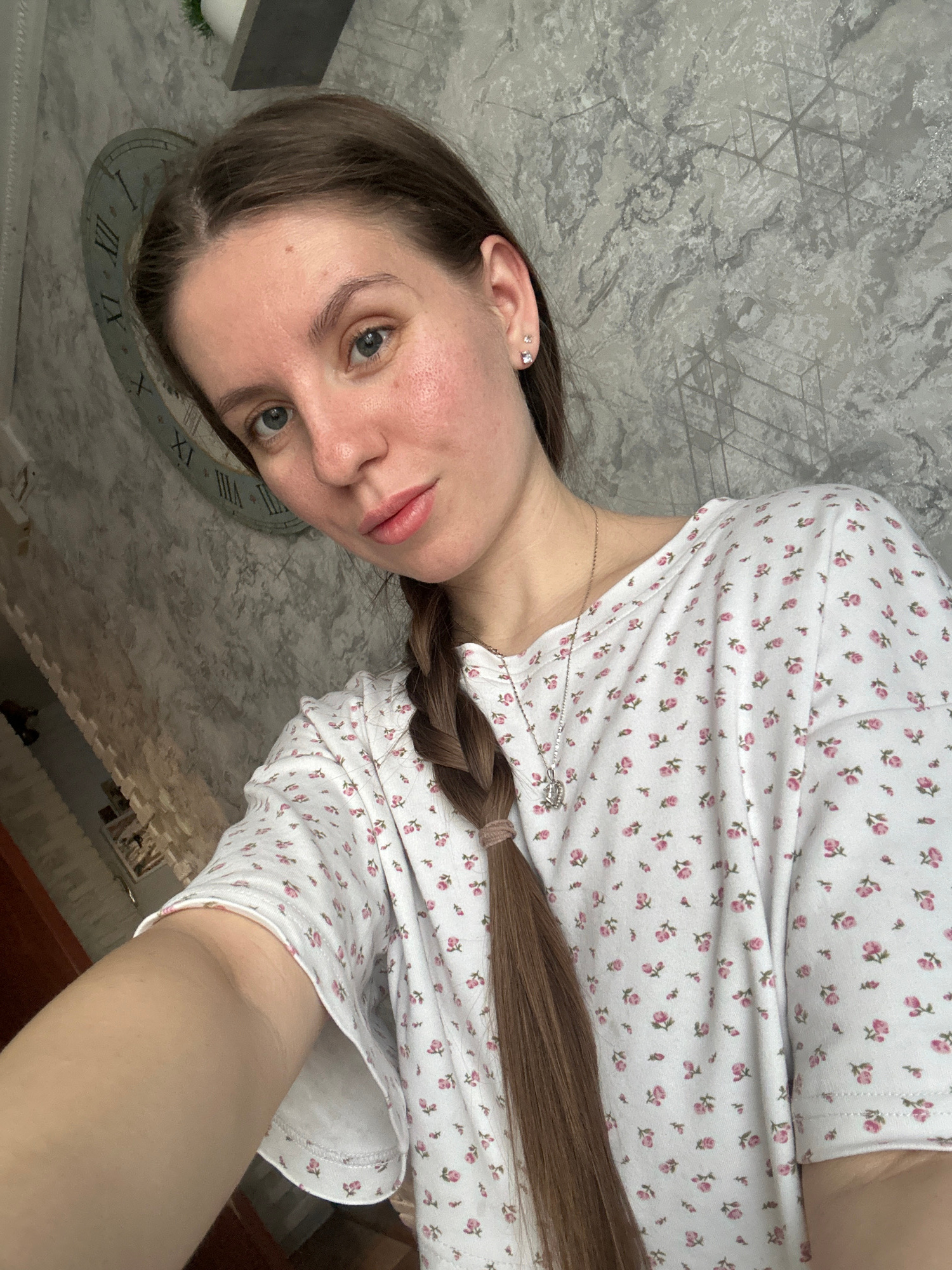 A young woman is captured in a selfie, her head tilted, looking directly at the camera with a slight pout. She appears to be in her mid-20s to early 30s, with fair skin, blue eyes, and light pink lips…read more