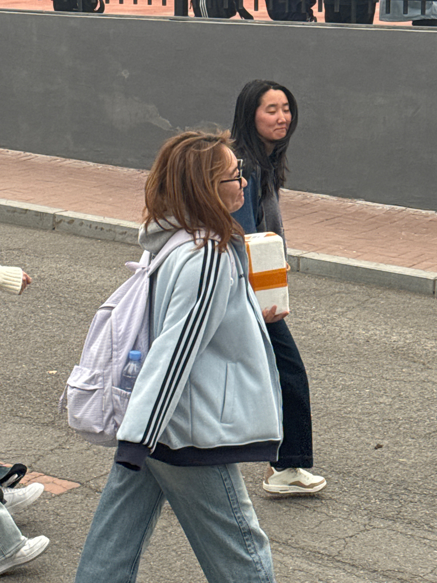 The image depicts two young women outdoors in Zhongtun, China. One woman with long, dark hair is lying down, holding a white package with orange tape. She is wearing dark clothing and light-colored sn…read more