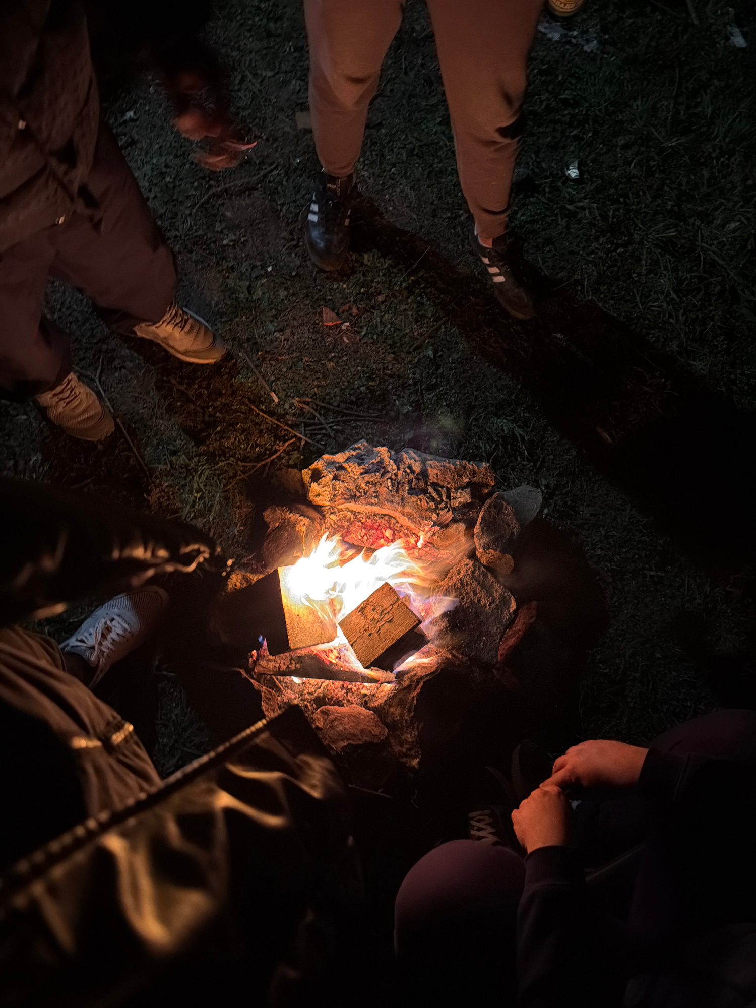A nighttime scene depicts a group of individuals gathered around an active campfire on a grassy and dirt-covered ground in the city of Tutrakantsi, Bulgaria. The central feature is a burning campfire,…read more