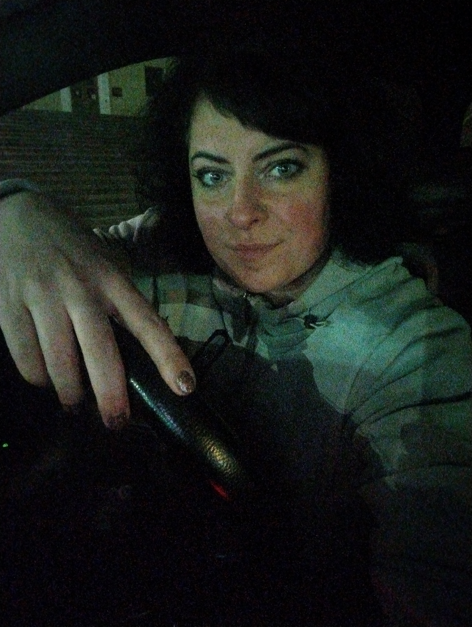 A woman is seated in the driver's seat of a car, presumably in Votkinsk, Russia, although no direct evidence of this is visible. The interior is dimly lit, with the woman's face and upper torso visibl…read more