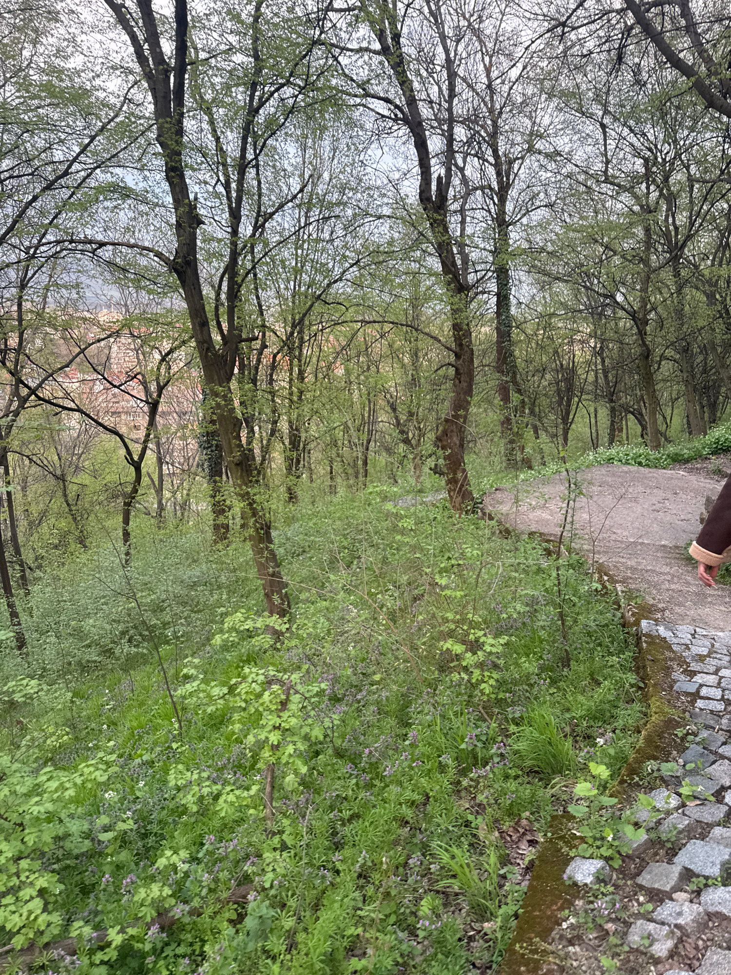 The image presents a tranquil scene of a wooded area, potentially within a park or green space in Montana, Bulgaria. A narrow path, constructed of concrete and bordered by cobblestones, winds throughβ¦read more