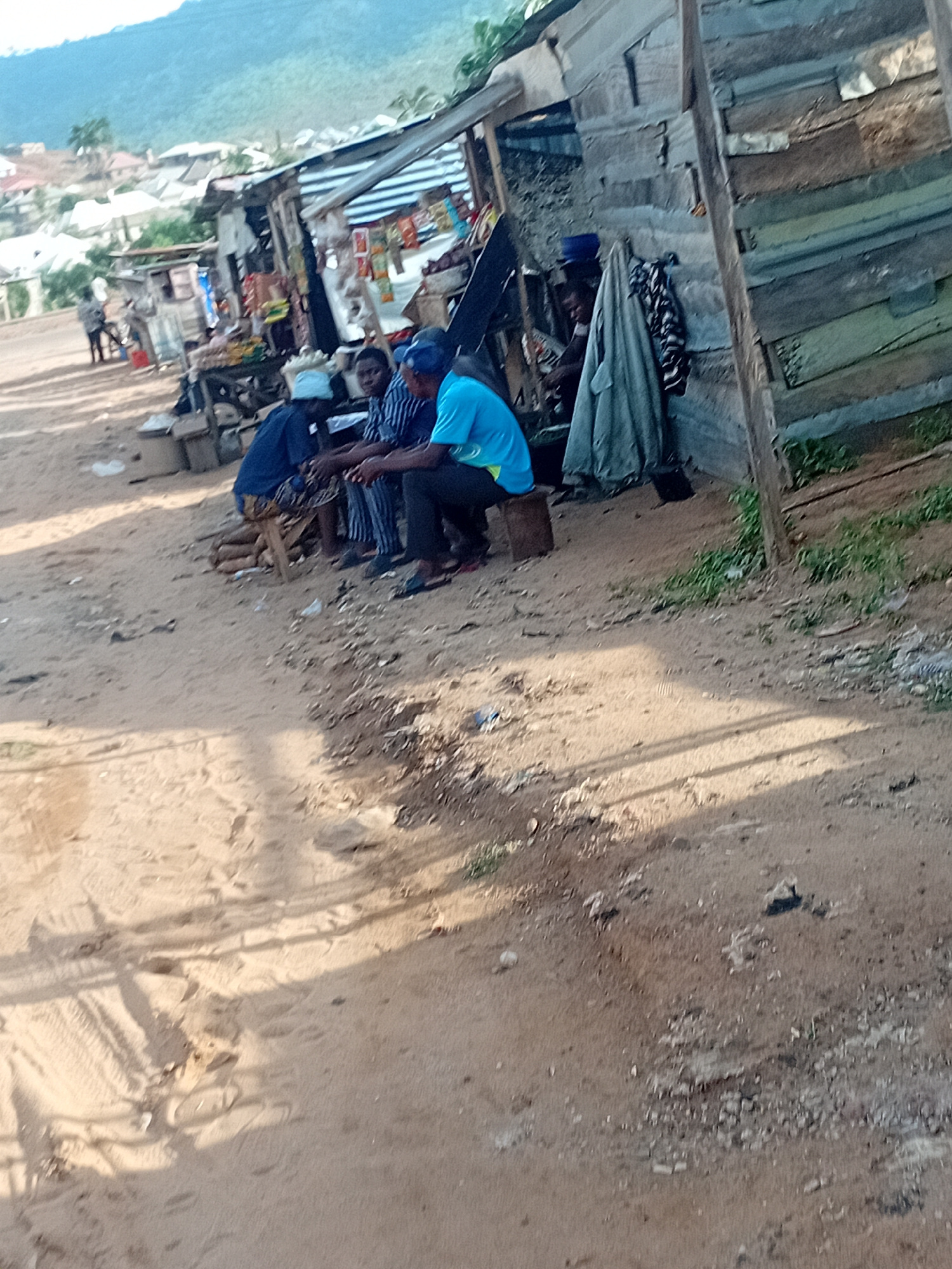 This media file depicts an outdoor scene, likely a market or roadside area in Lokoja, Nigeria. The ground is unpaved, consisting of sand and dirt with scattered small stones and debris. Long, distinct…read more