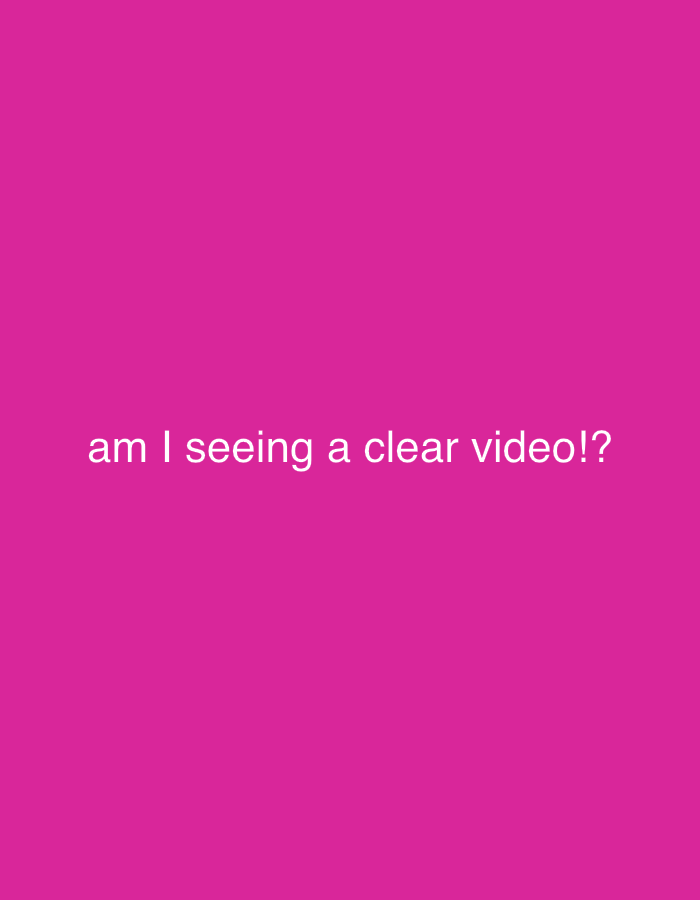 The image displays a solid magenta background. Centered horizontally in the lower middle portion of the frame, white text reads: "am I seeing a clear video!?" No people, subjects, or other objects are…read more