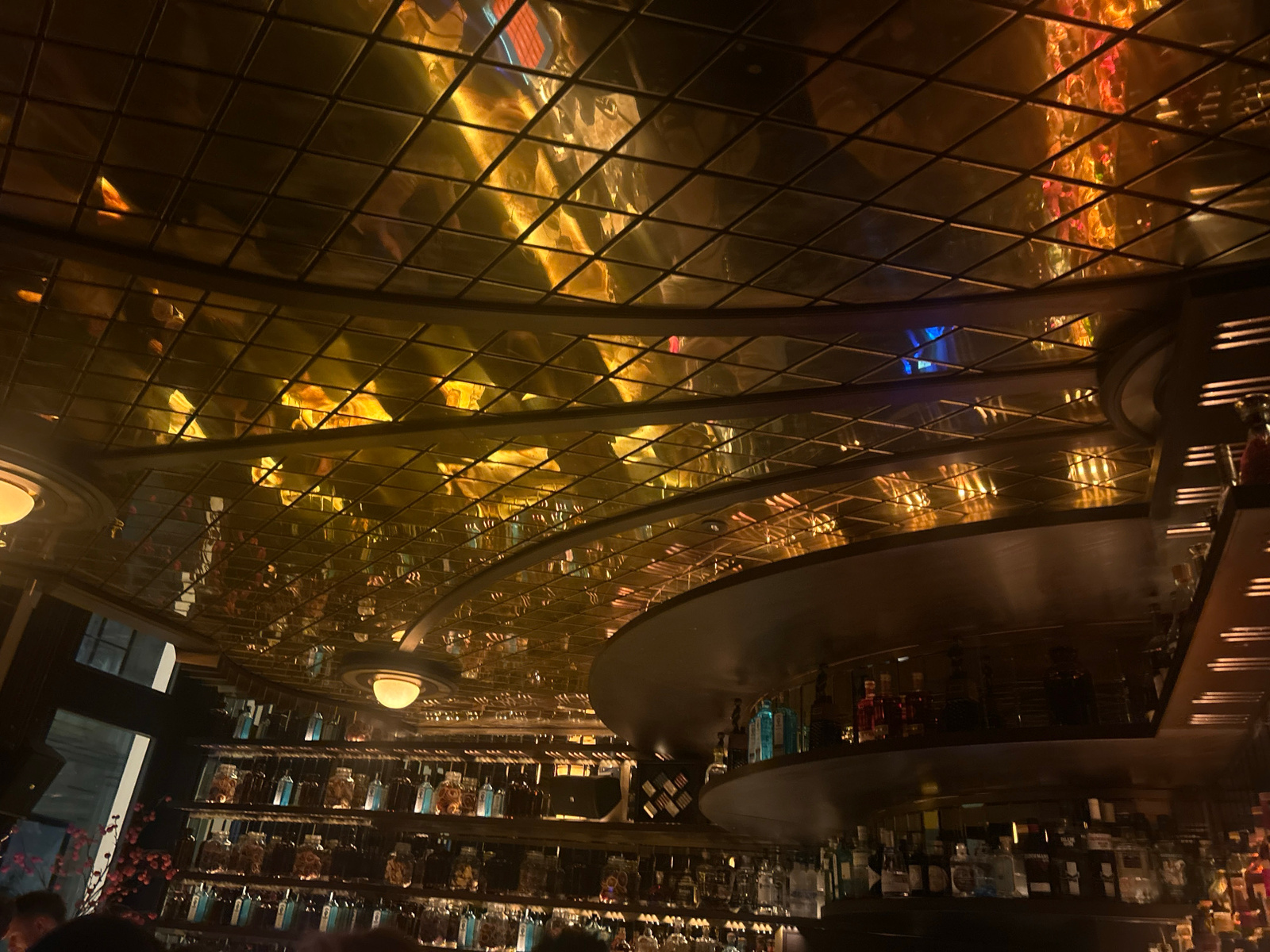 The image displays the interior of The Bank Brasserie & Bar, situated at Am Hof 2, 1010 Vienna, Austria. The scene is characterized by a prominent, vaulted, multi-level ceiling constructed from a grid…read more