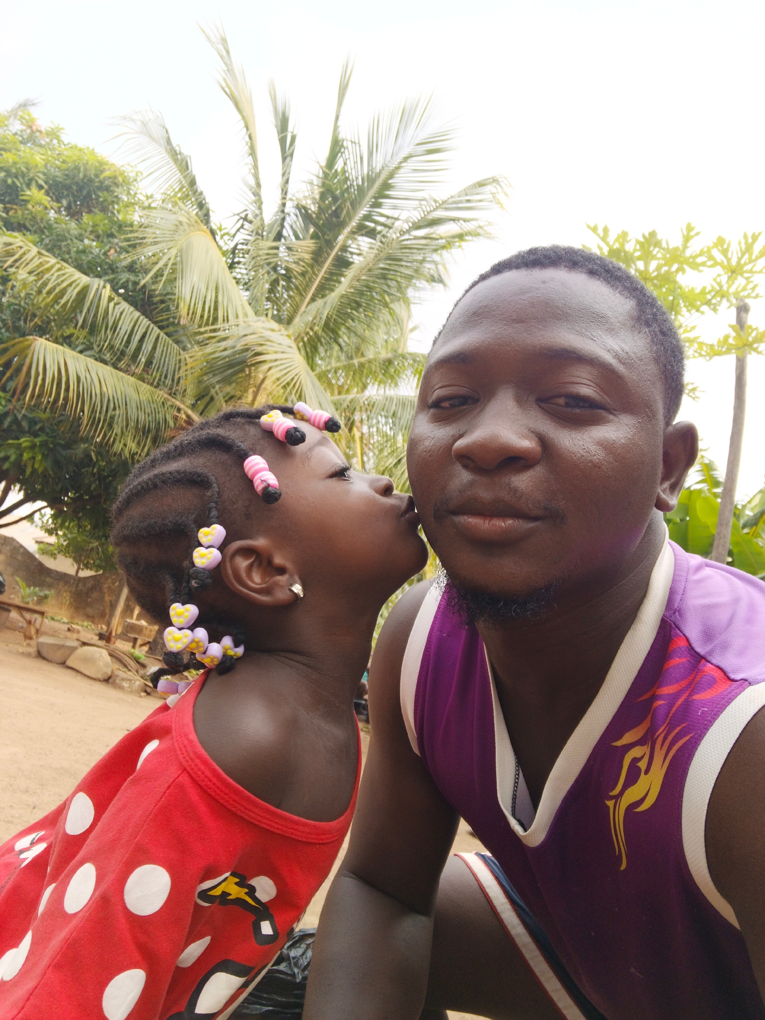 A close-up photo shows a man and a young child in an outdoor setting. The man is positioned to the right, and the child is on the left, kissing him on the cheek. The child, a young girl, has braided…read more