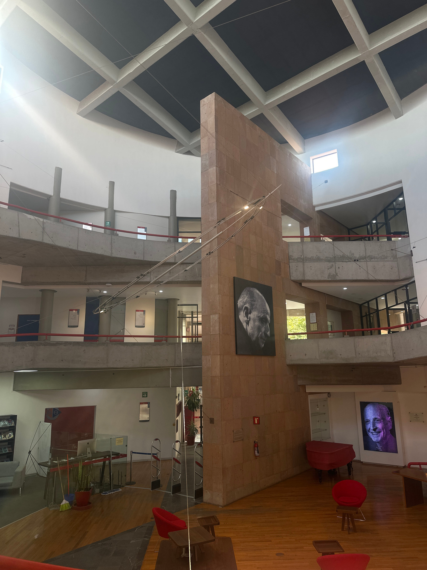 The image captures the interior of a multi-story building with a distinctive architectural design. The location is in San Bernardino Tlaxcalancingo, Mexico. The building features a large central space…read more
