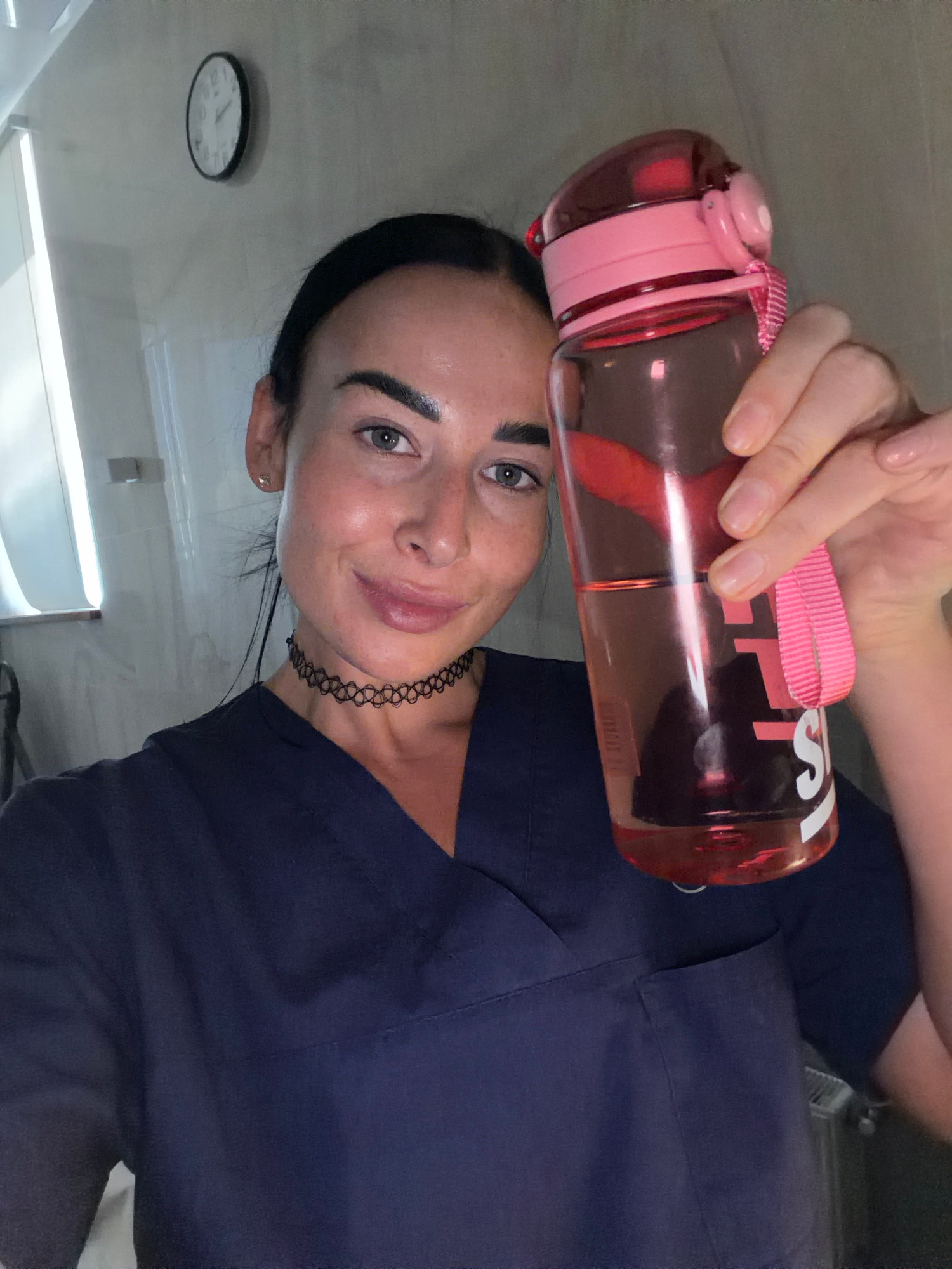 This portrait-style image, originally rotated 90 degrees counter-clockwise, depicts a young woman taking a selfie. She has dark hair pulled back, prominent eyebrows, and light-colored eyes, looking to…read more