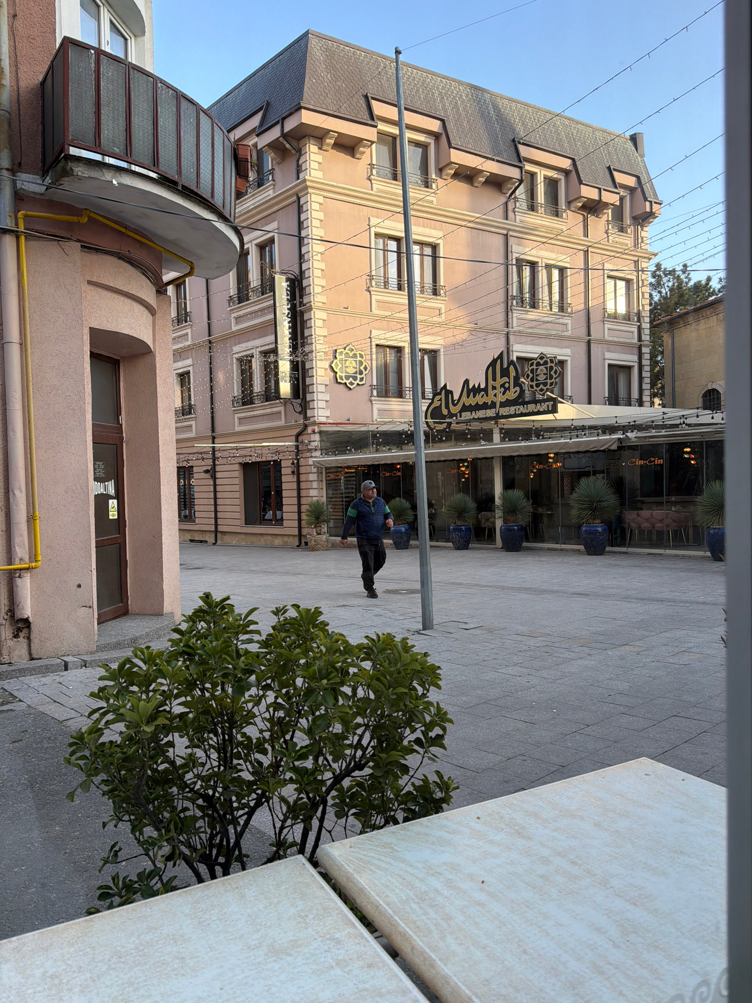 The image captures a street scene in Constanța, Romania. The dominant feature is a multi-story building with ornate architectural details. The building houses "El Matik Lebanese Restaurant," as indica…read more