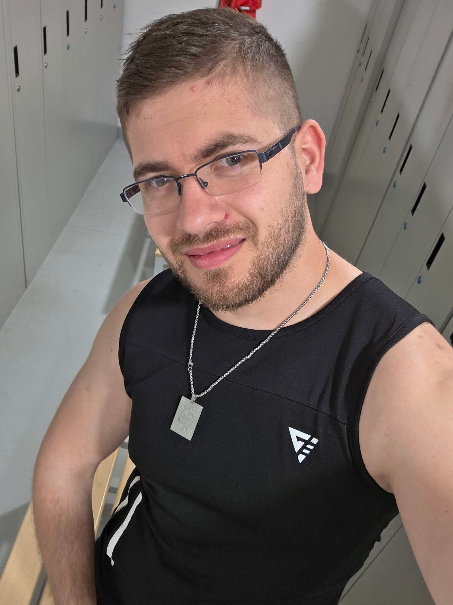 A male individual is captured in a selfie, likely taken in an indoor setting such as a locker room or a storage facility in Plovdiv, Bulgaria. The image, originally rotated, shows the person upright.…read more