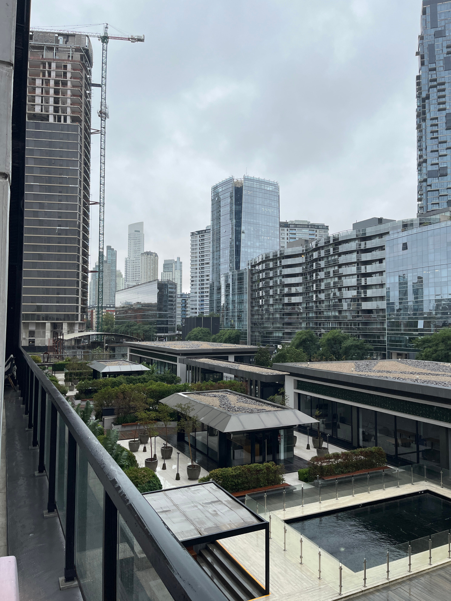 The image shows a view of Puerto Madero, Buenos Aires, Argentina. Several modern high-rise buildings are visible. The foreground features a commercial area with plantings, walkways, and what appearsβ¦read more