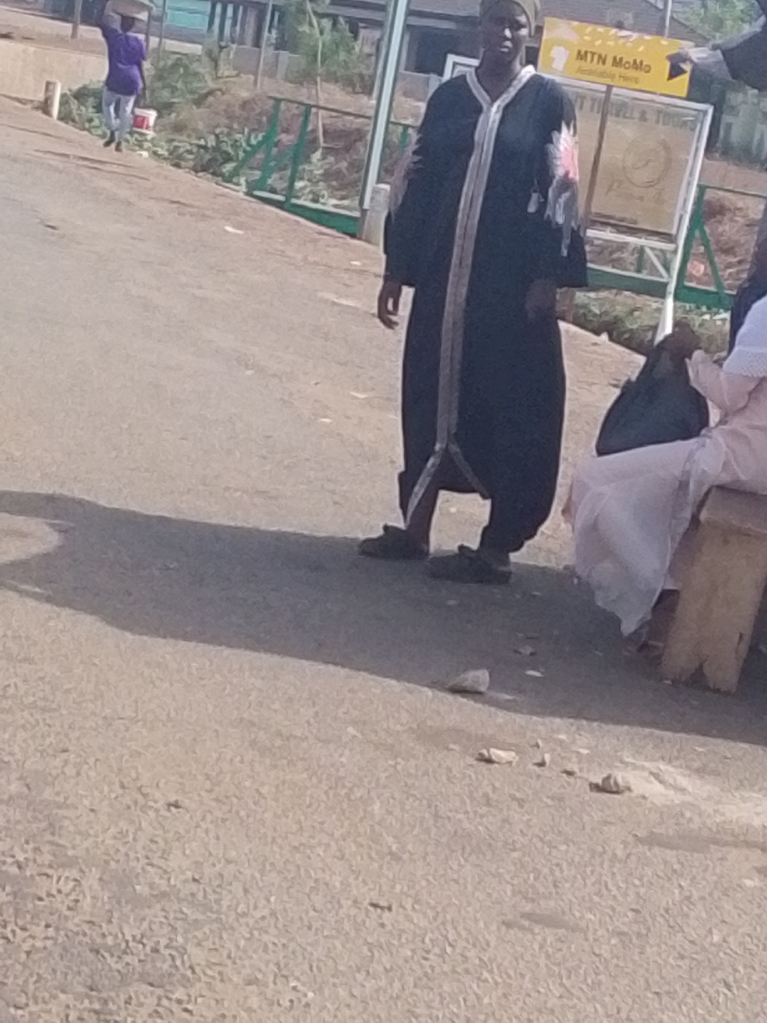 This photograph captures an outdoor scene along a dusty, unpaved road, likely in Tamale, Ghana, given the location context and the presence of an MTN MoMo sign. The time of day appears to be sunny day…read more