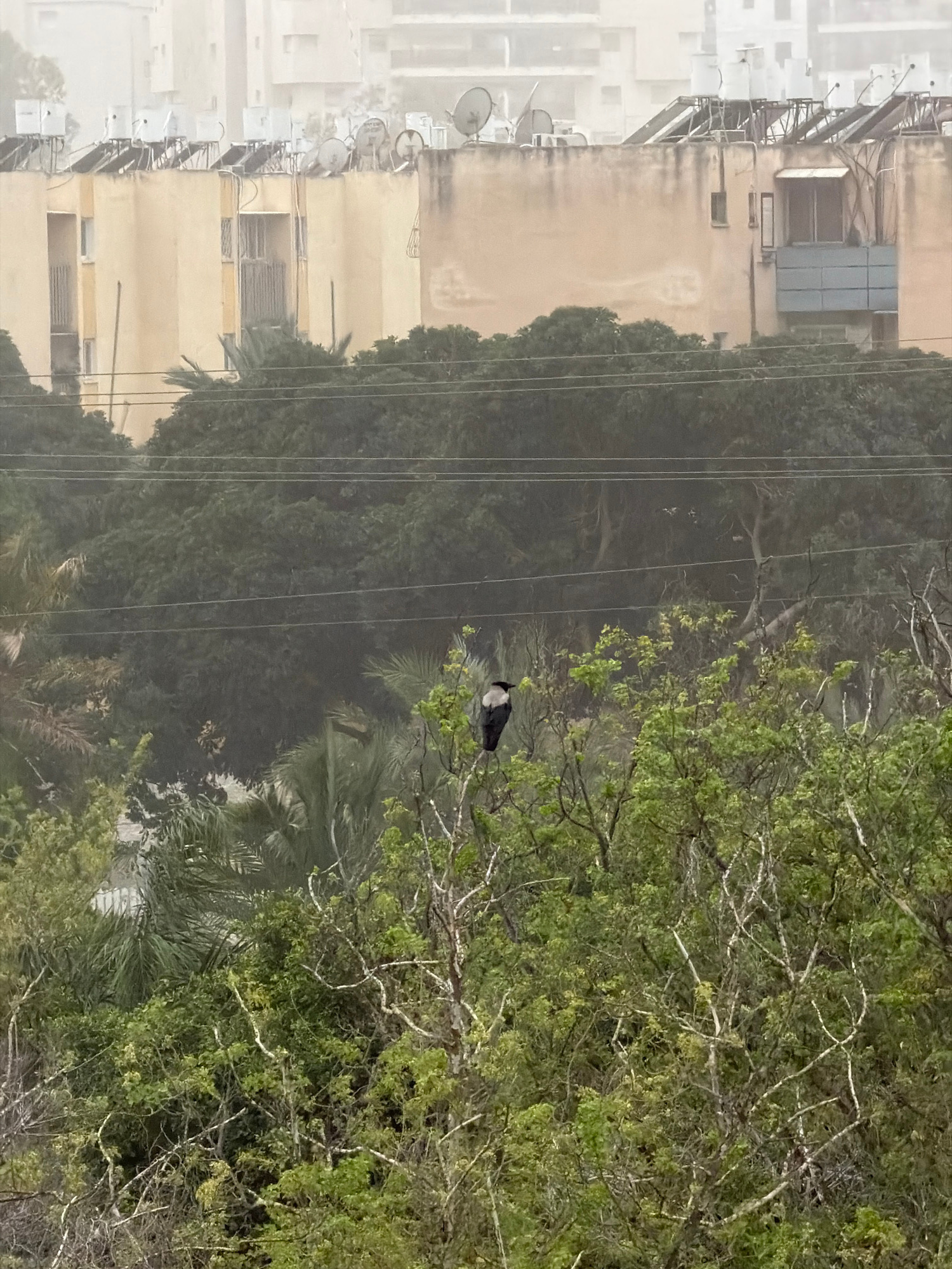 The image depicts a street scene in Kiryat Bialik, Israel, on a slightly overcast day. The camera angle is likely from an elevated position, such as an upper floor of a building. In the foreground, th…read more