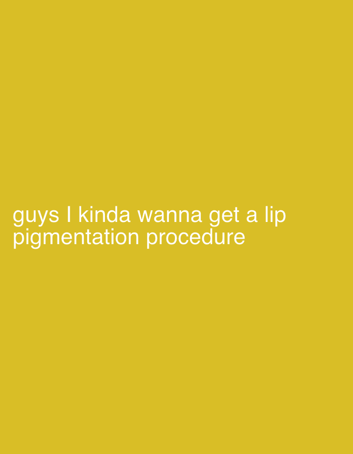 The image is a solid yellow background with the text "guys I kinda wanna get a lip pigmentation procedure" in white, centered towards the bottom left. The location is not specified, and there is no in…read more
