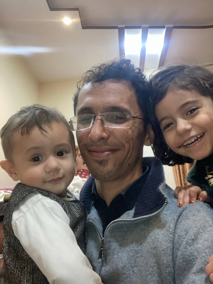 A man wearing glasses poses for a selfie with two children. The girl, positioned above the man, smiles broadly. The boy, below, looks directly at the camera. The man is wearing a zip-up sweater. The c…read more