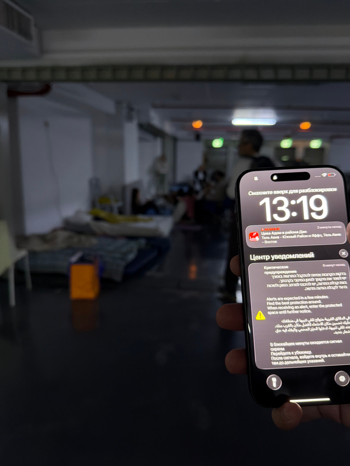 An individual's right hand holds a dark-colored smartphone, displaying a lock screen with the time "13:19." Below the time, a "Notification Center" shows a critical multi-language alert. The alert is…read more