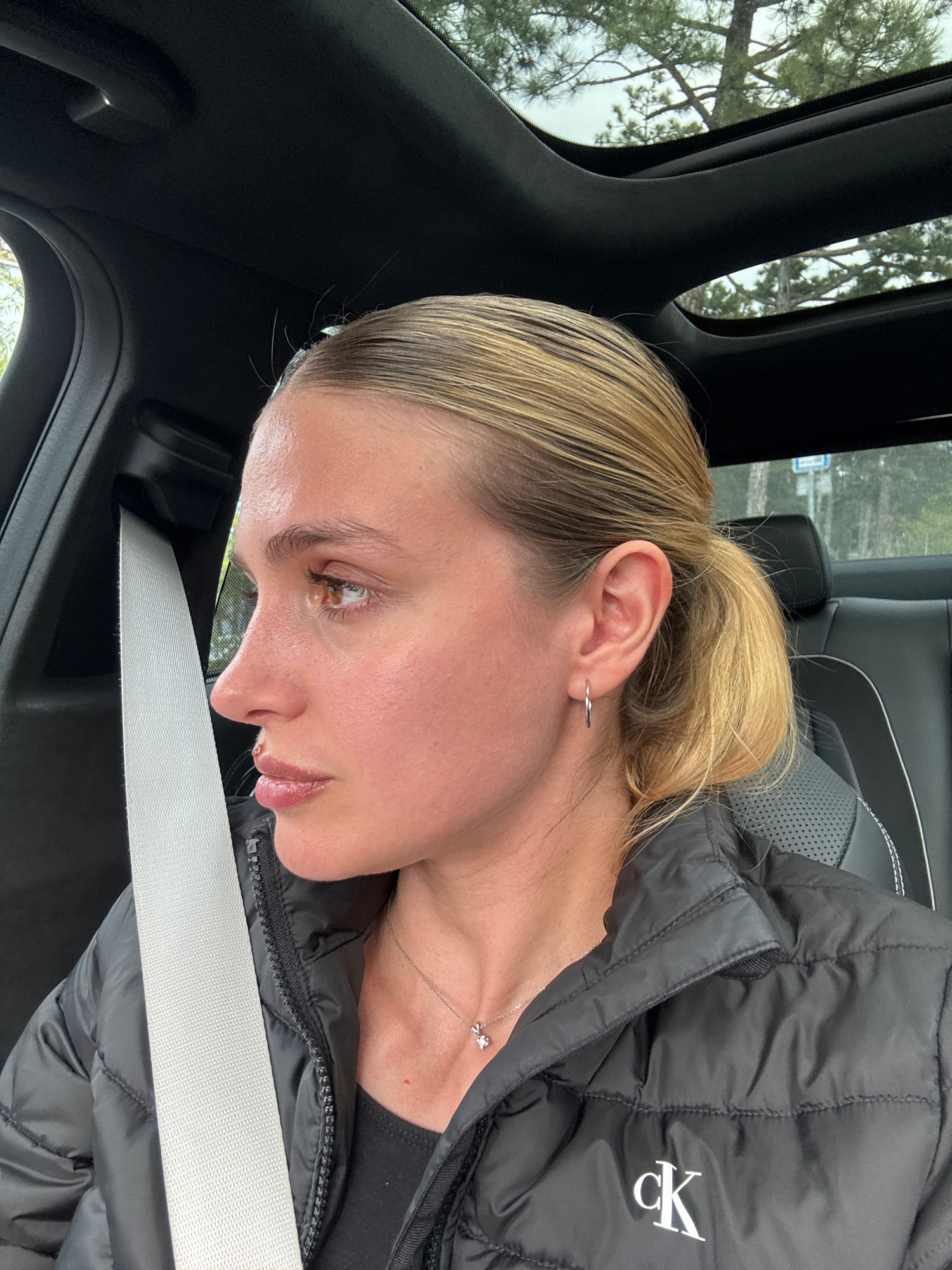 A close-up, rotated image shows a young woman sitting inside a vehicle, likely a car, with the specified location being Tbilisi, Georgia. Her blonde hair is pulled back in a ponytail, and she is seen…read more