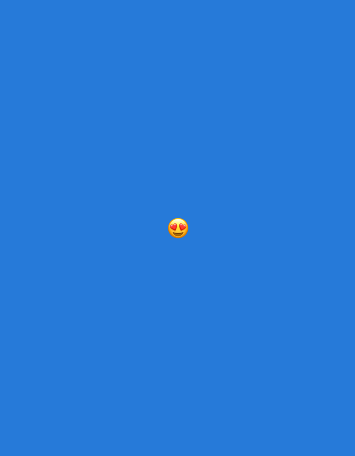 A yellow emoji with heart-shaped eyes is centered on a blue background.