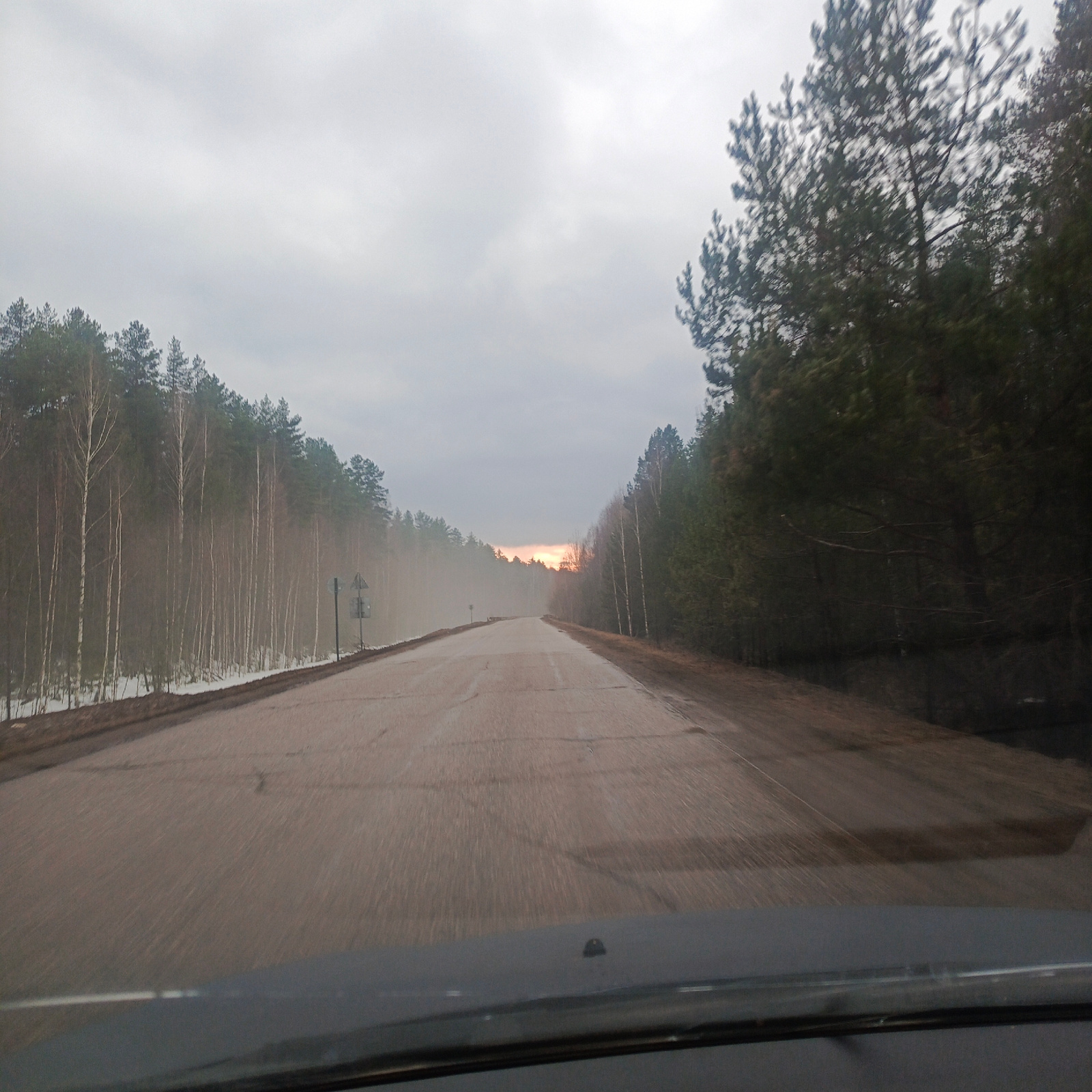 A road stretches through a dense forest in what appears to be the city of Dubovaya, Russia. The gray sky suggests either early morning or late afternoon. Trees line both sides of the road, and the phoβ¦read more