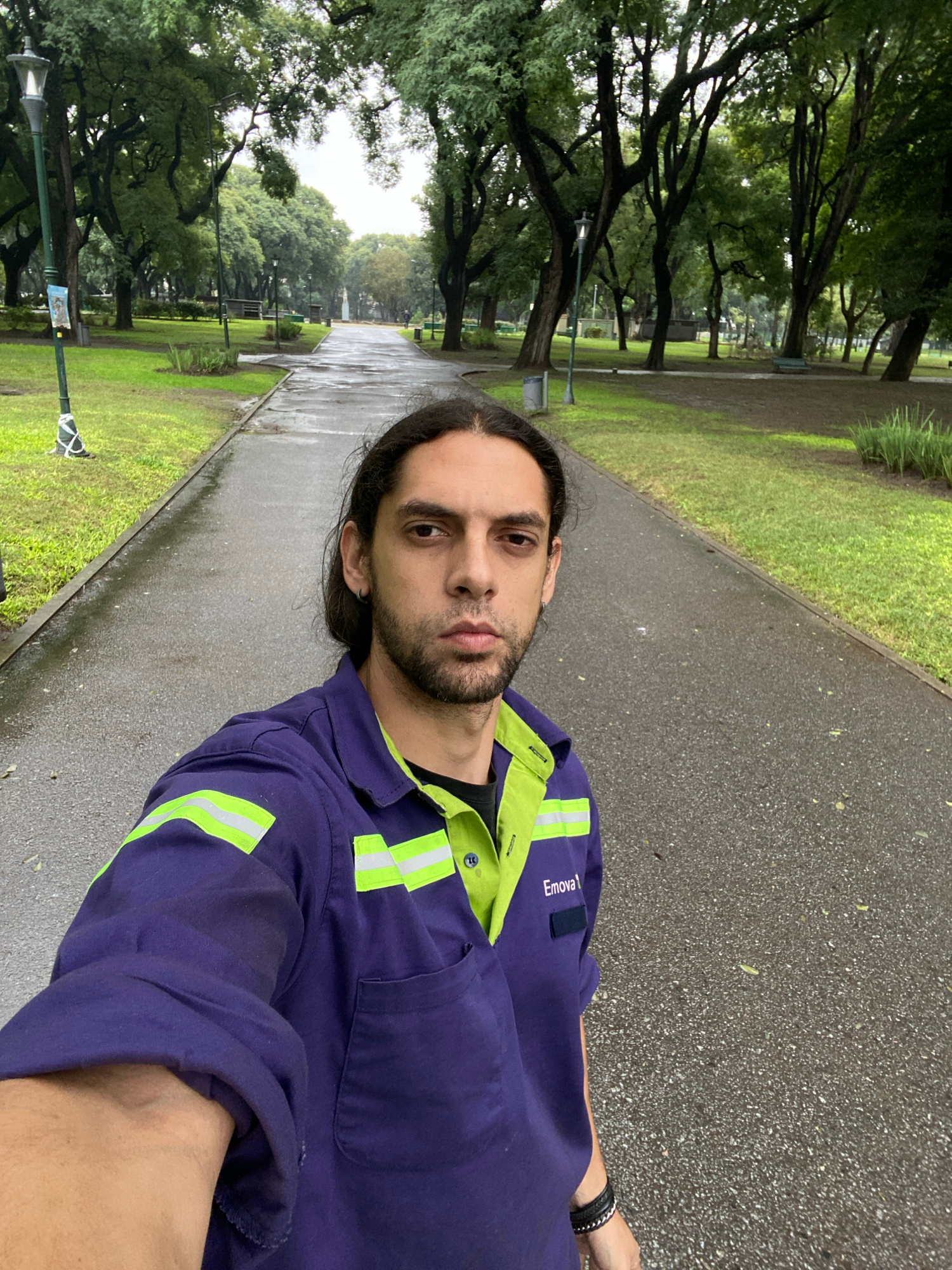 This image is a vertically oriented selfie, originally taken horizontally and rotated 90 degrees counter-clockwise, featuring a man in an outdoor park setting, likely in Buenos Aires, Argentina. Theβ¦read more